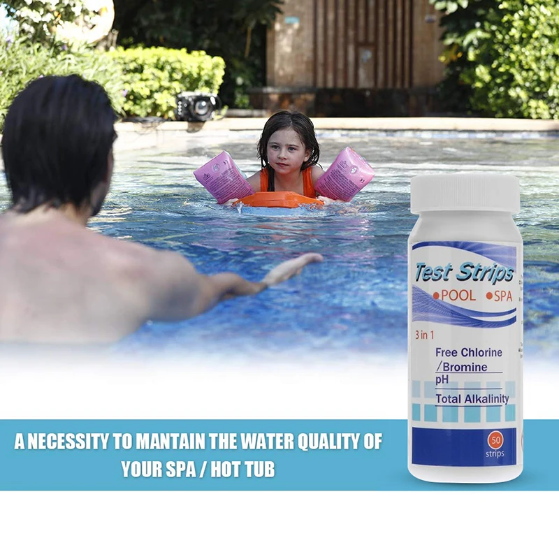 50 полосок, 3 в 1, тест-бумага для определения качества воды в ванне, бассейне, остаточного хлора, значения PH, щелочности, измерительные инструменты для ванн