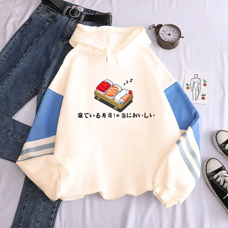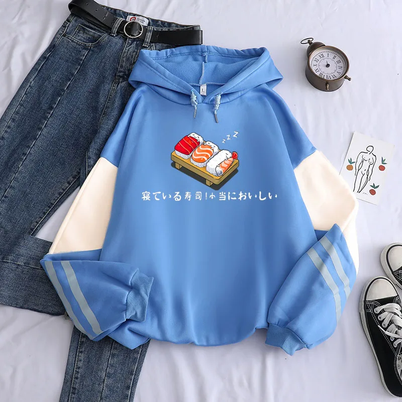 Молодежная одежда, Женская толстовка, зимние толстовки большого размера, женские свитшоты, милые суши, толстые свободные женские толстовки с мультяшным принтом, Лидер продаж