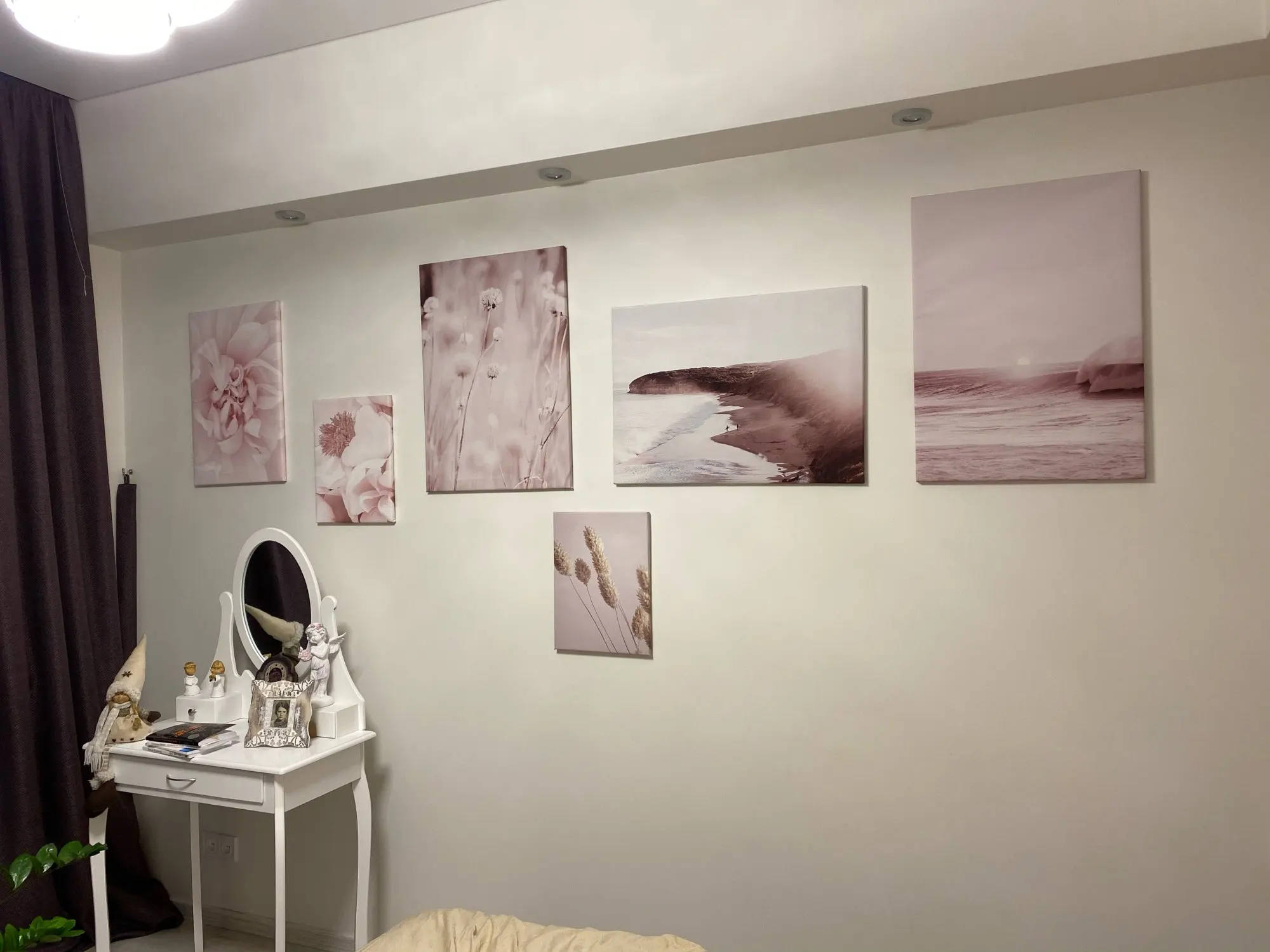 Получила полотна через три недели , но нужно заметить что пришли одни полотна в рулоне . Заказала отдельно деревянные Рамки и с помощью горячего клея проклеила на Рамки . Рамки заказывала на 10 см меньше . Если полотно 80 на 70 , Рамки заказывала 70 на 60 . В результате получилось достаточно привлекательно , но пришлось потрудится . Цвет полотен так как на фото .