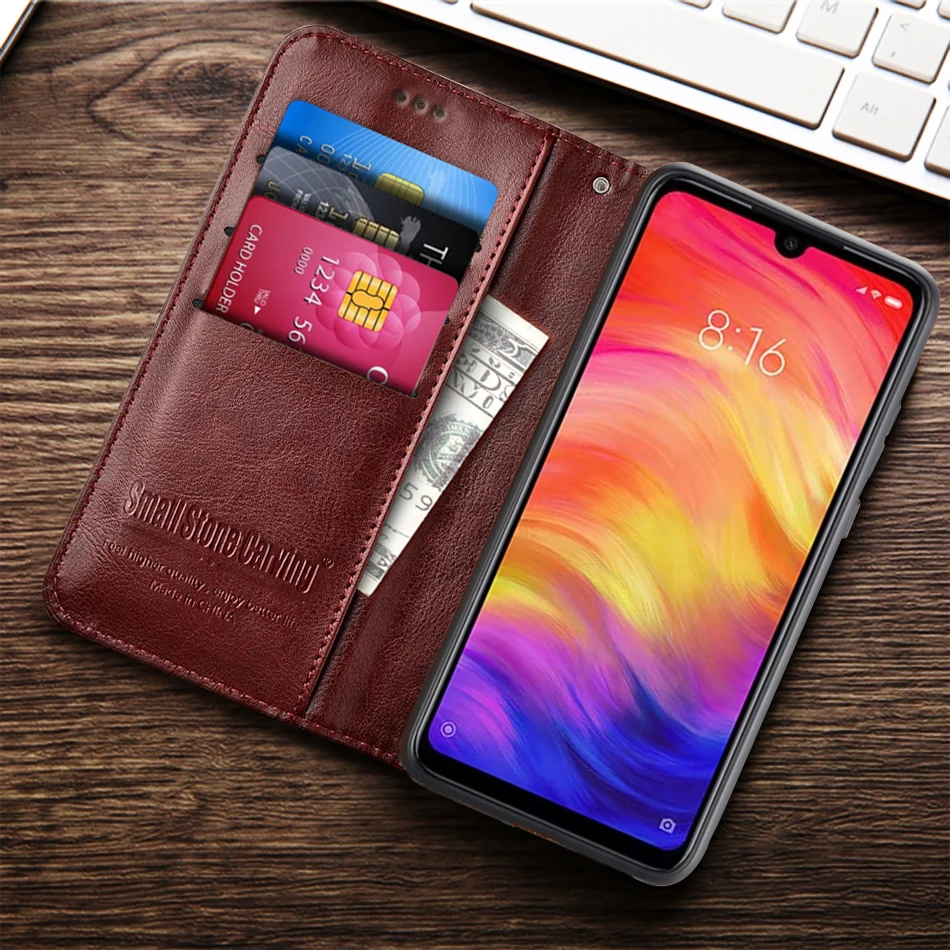 Чехол-книжка для Xiaomi Redmi Note 7, кожаный, с отделением для карт
