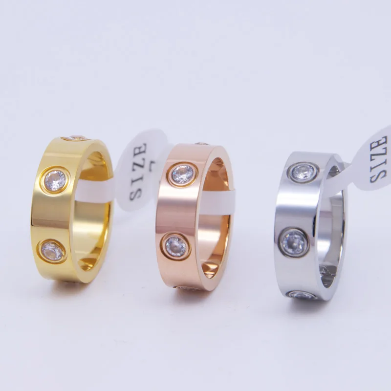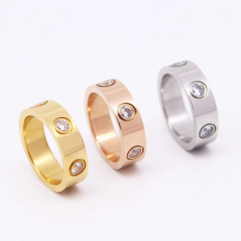 Кольцо женское с 6 кристаллами, красивое полированное кольцо из титановой стали, Классическая брендовая бижутерия, Прямая поставка