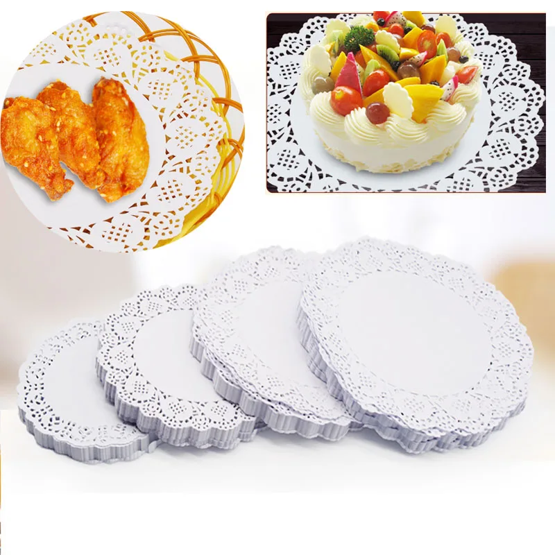Круглые Бумажные кружевные настольные салфетки, белая масляная абсорбционная бумага, бумага для выпечки тортов, еды, декоративные бумажные коврики, 100 шт.