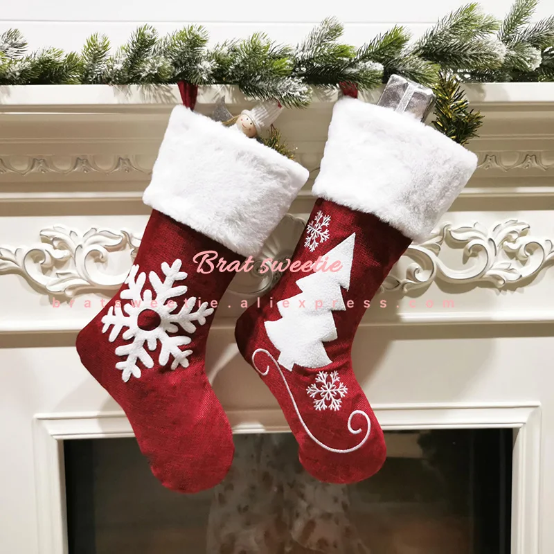 Рождественские чулки, красный олень, лось, снежинка с искусственным мехом, рождественские чулки, украшения для рождественской елки, детские подарки, сумка