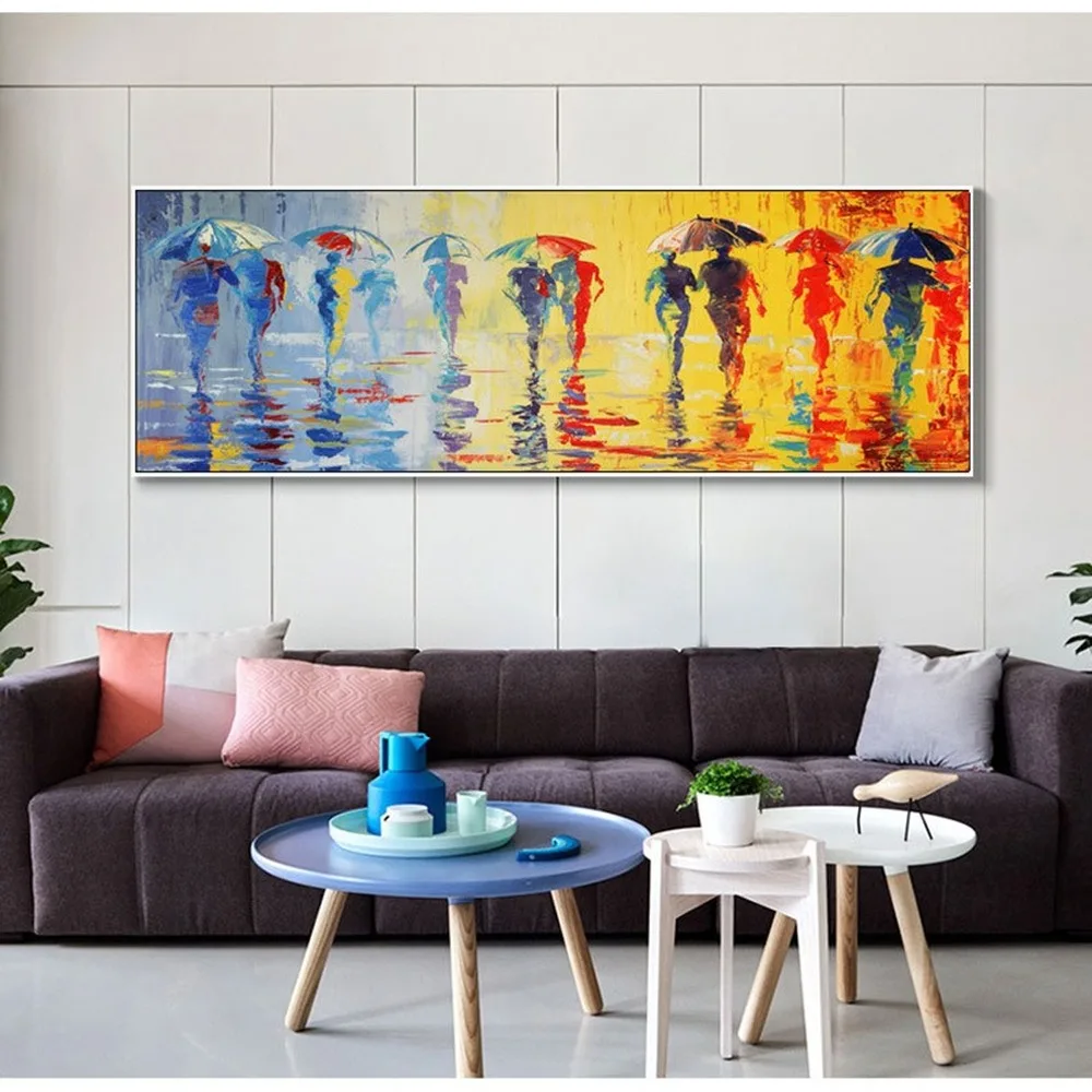 Абстрактная картина маслом на холсте ночной зонтик персонаж вид сзади настенный декоративный плакат баннер ночная сцена прикроватные картины росписи