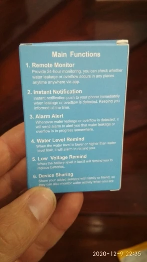 Аккуратный маленький компактный датчик. Сложно установить сопряжение с приложением, но когда это сработает, это нормально. Этот датчик воды включает в себя использование релейного сообщения о том, что отключение питания является корпусом. Даже односторонний терминал блокирует открытую резку, чем на штифтах сенсорных винтов. Они подходят, чем провода с подключенным реле. Было бы красиво, если бы вы могли настроить текст сообщения. Но он работает.