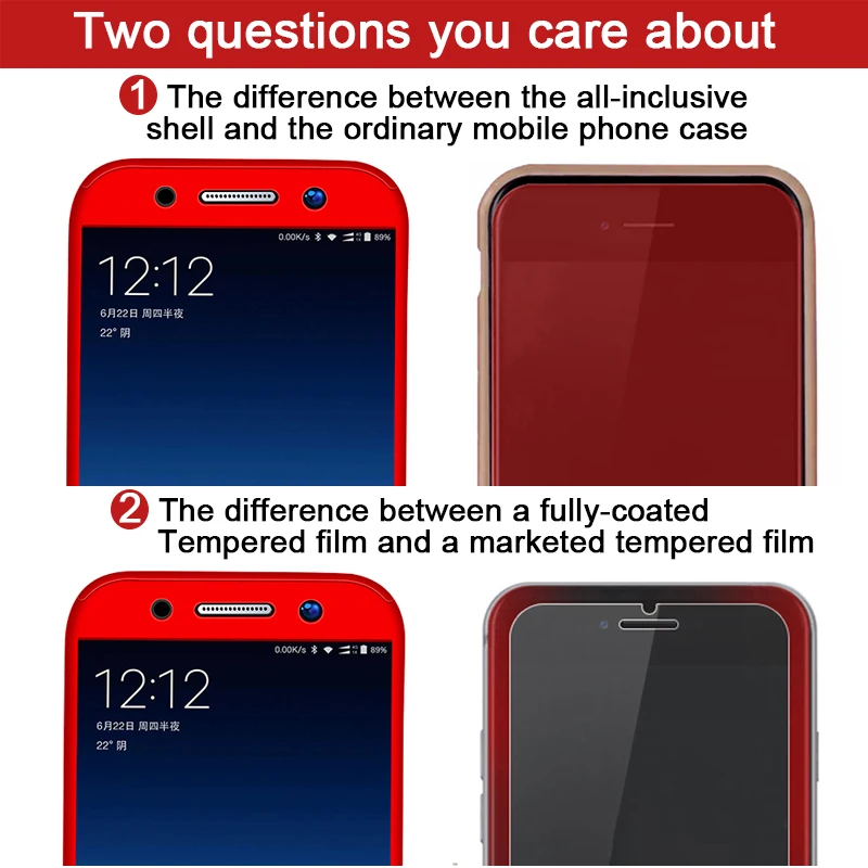 Feature3Black Red Blue Gold Rose Purple Case with Tempered Glass Fundas Capa