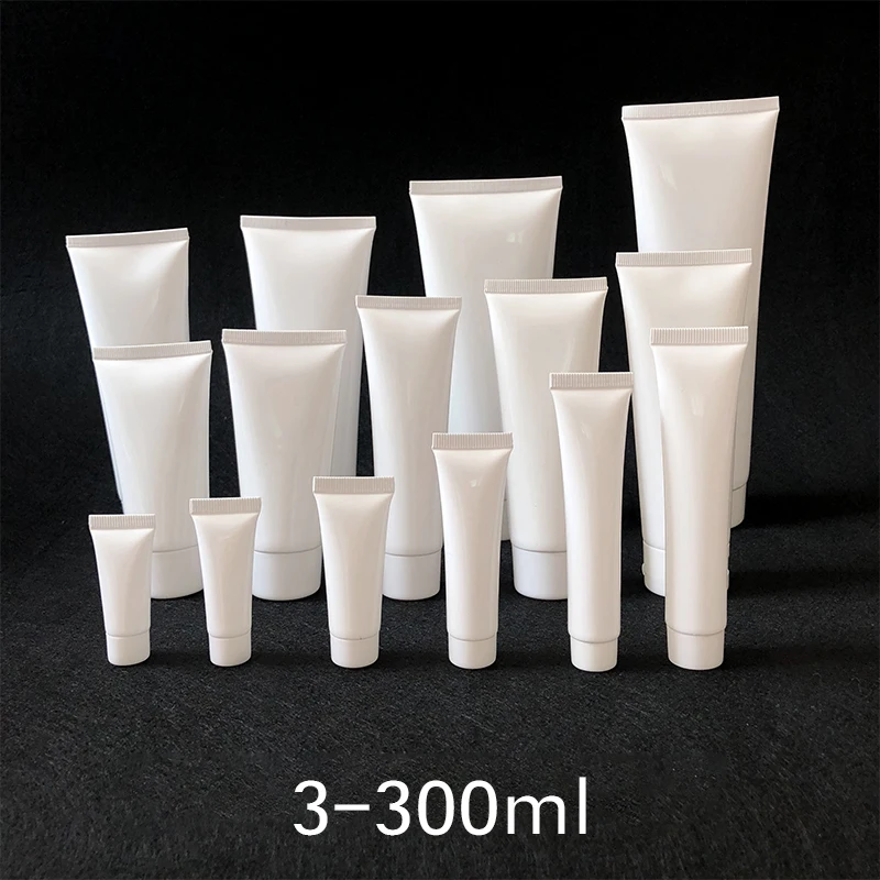 Пустой контейнер для косметики, 3 мл, 5 мл, 10 мл, 30 мл, 50 мл, 100 мл, 200 мл, белая пластиковая Мягкая трубка, сжимаемая бутылка для крема для макияжа, бесплатная доставка