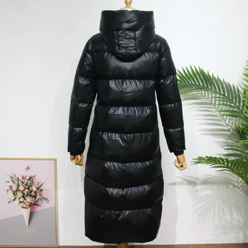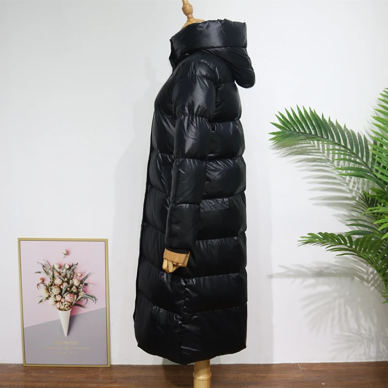 Размера плюс женский длинный пуховик с капюшоном, куртка на 90% белом утином пуху, толстый теплый пуховик, Осень-зима