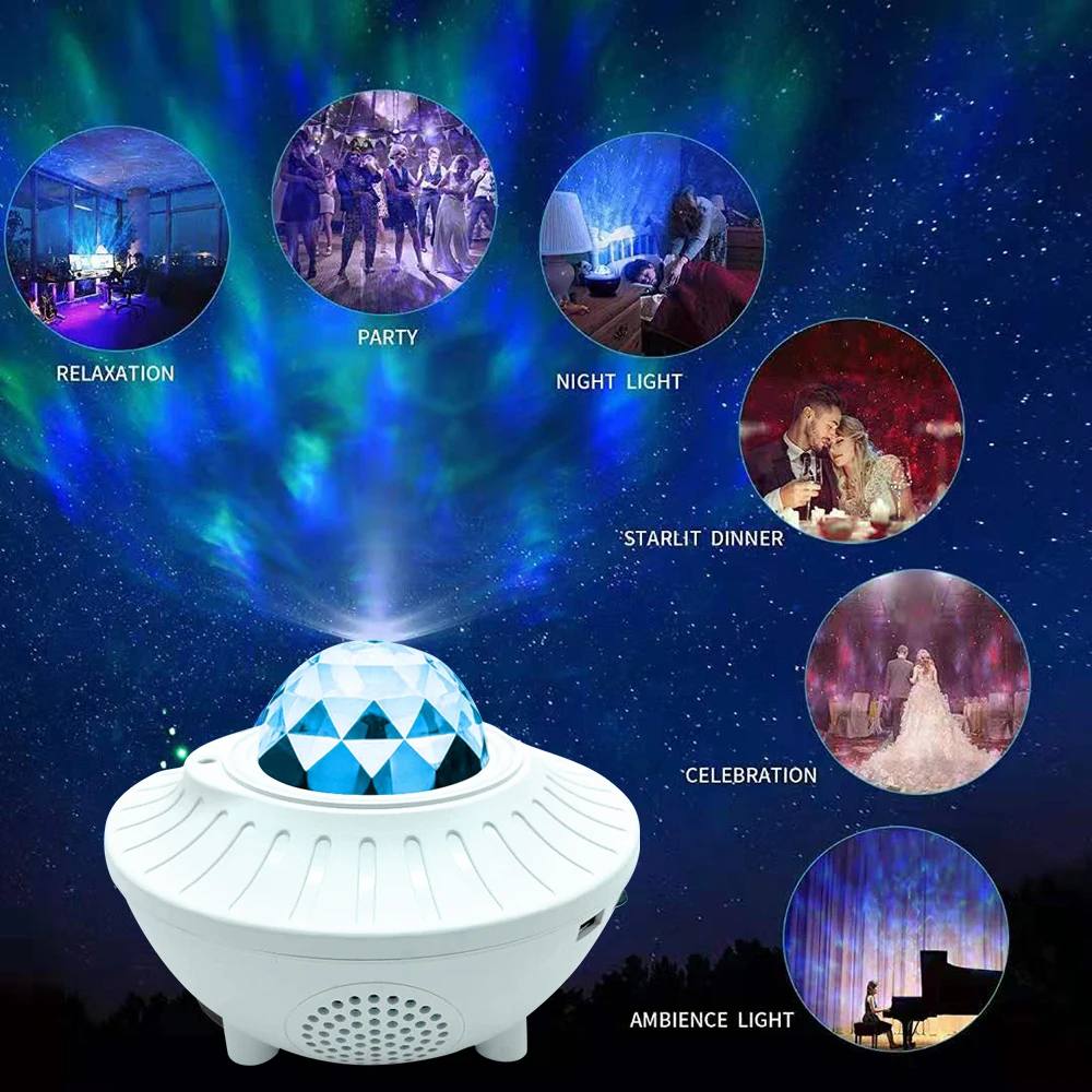 Светодиодный ночсветильник-звезда, проектор водяных волн, 21 режим подсветильник Ки, Bluetooth, музыкальный проигрыватель, пульт дистанционного управления D30