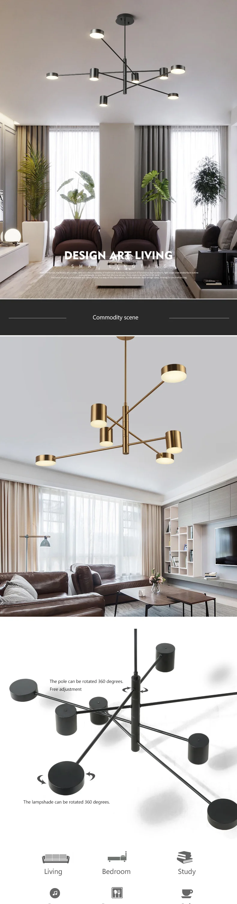 Современные Люстры с 8 держателями, осветительные приборы золотого и черного цвета алюминиевое приспособление, лампы для ресторана, гостиной, столовой, отеля, кухни