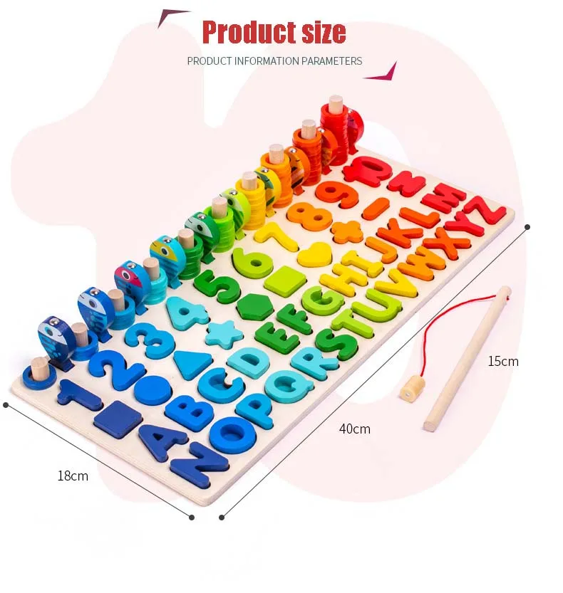 Обучающие деревянные игрушки Монтессори, Детская плотная доска, математическая рыбалка, детская деревянная Дошкольная игрушка Монтессори с геометрическим счетчиком