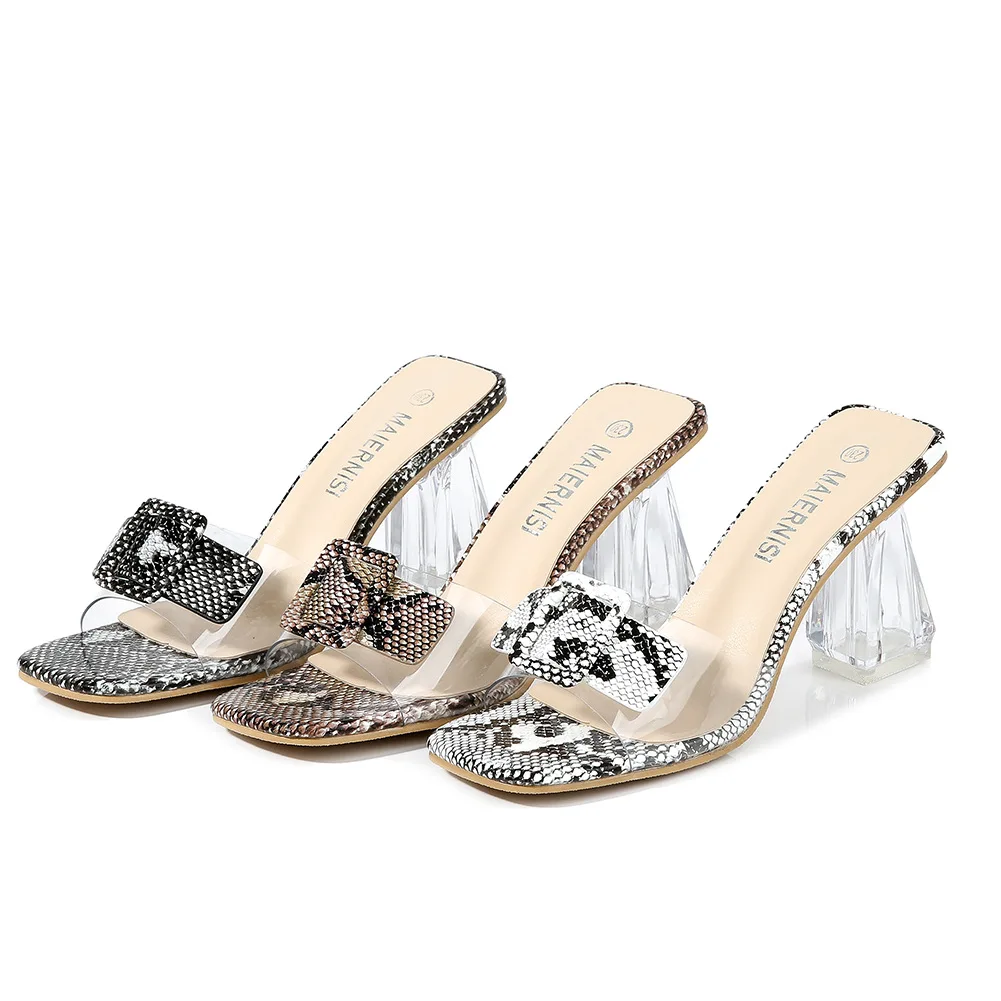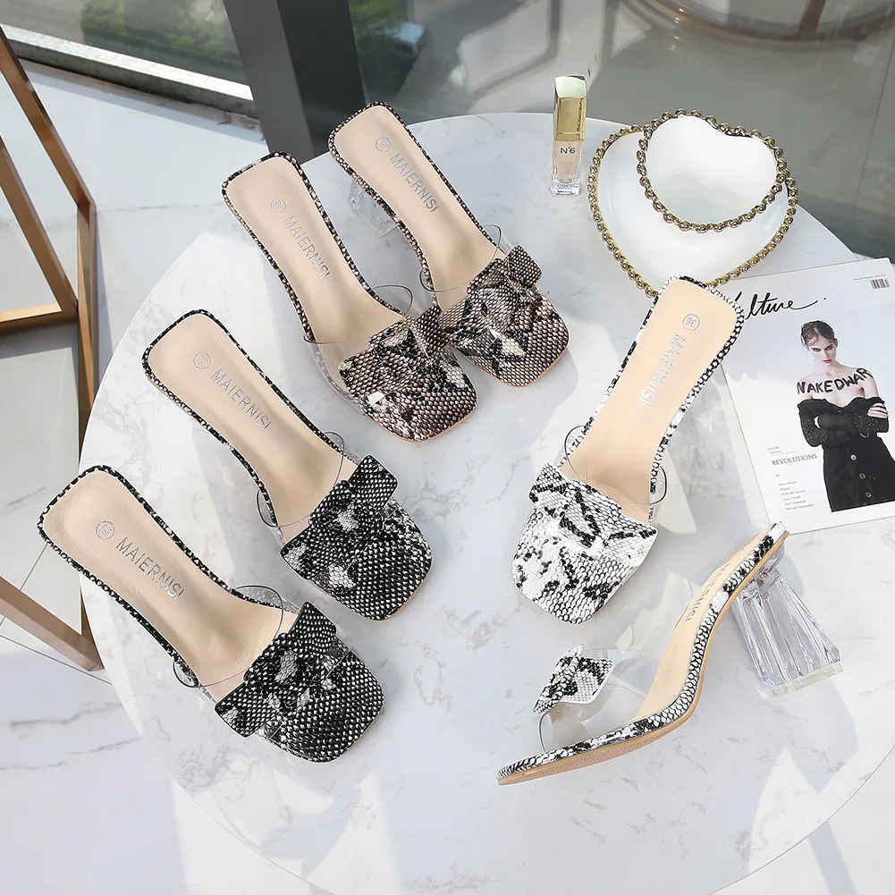 Женские мюли из ПВХ, прозрачные туфли на высоком квадратном каблуке, с пряжкой, открытые, модные летние Тапочки