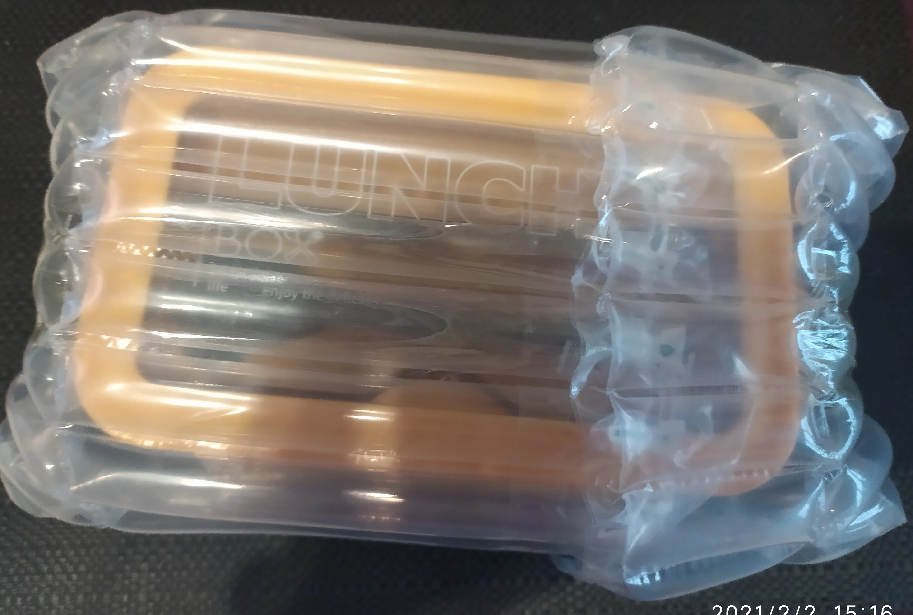 Он был очень хорошо упакован! Доставка вовремя. Сам Ланчбокс точно соответствует описанию.-прочный, хорошего качества и отлично выглядит!