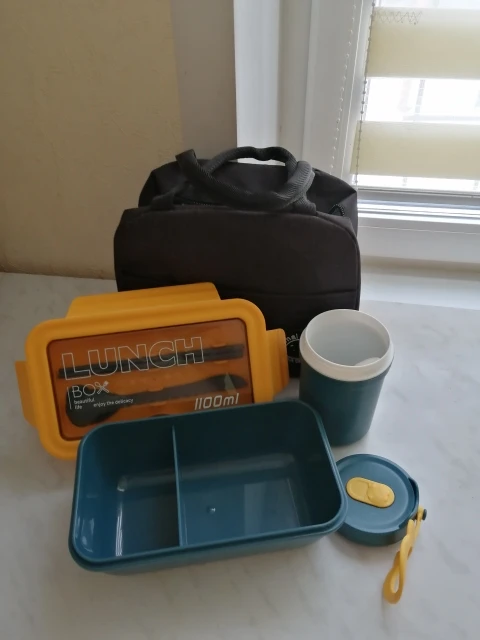 Бокс замечательный. Очень добротно слелан. Продавец в подарок положил термостакан и сумку для ланчбокса. Я доволен.