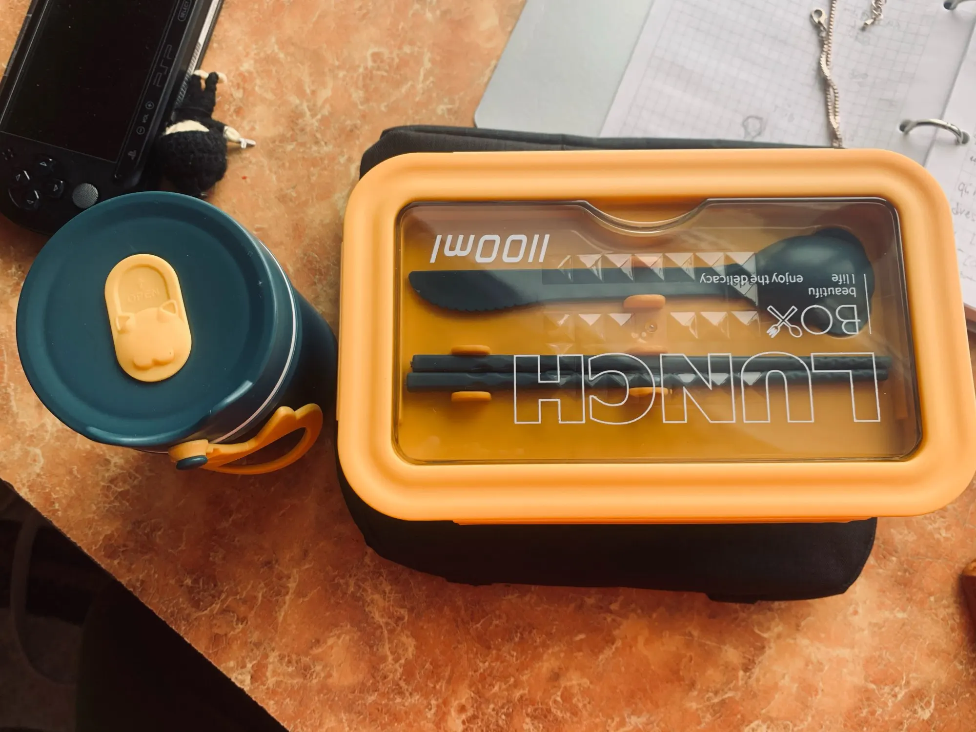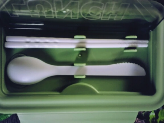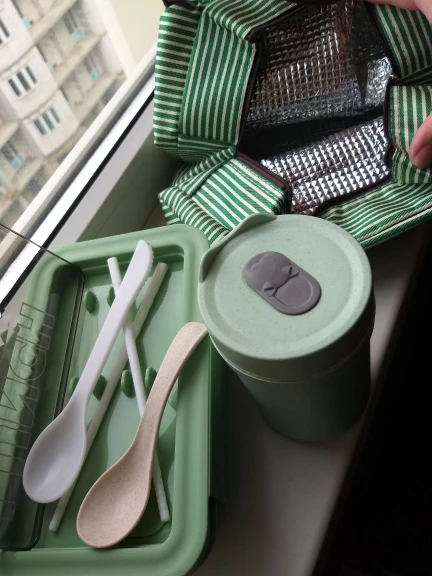 Классный контейнер, правда место палочек и ложки обычную ложку и вилку не положить, обычные слишком длинные, не помещаются в отсек. Купил десертную ложку и вилку, они средней длинны. Контейнер отличный