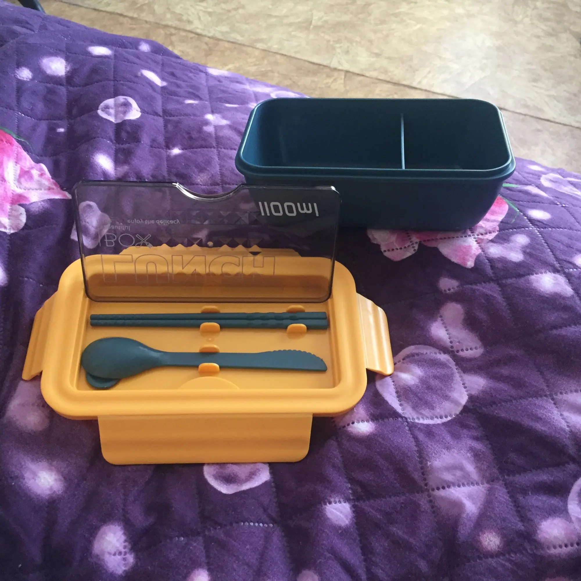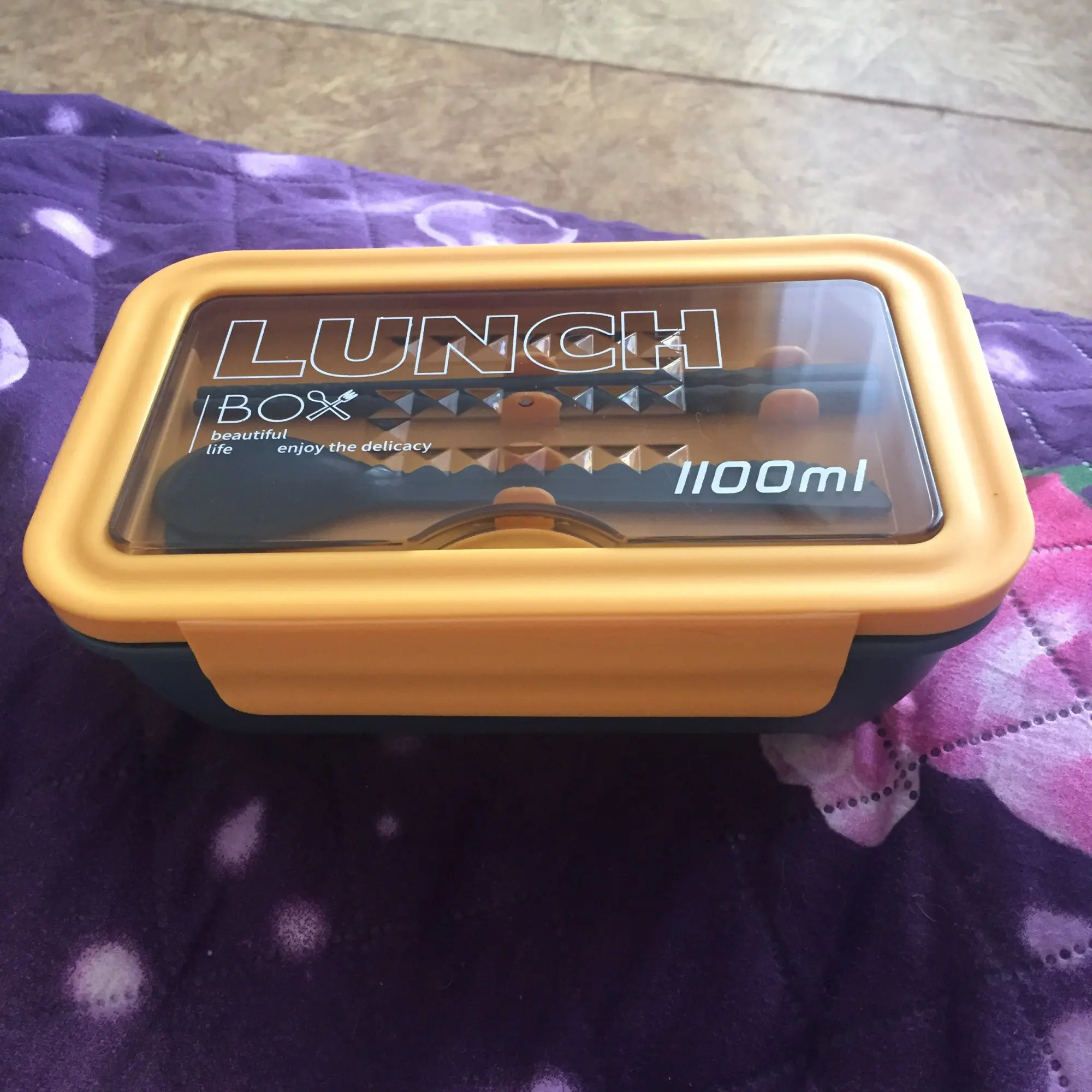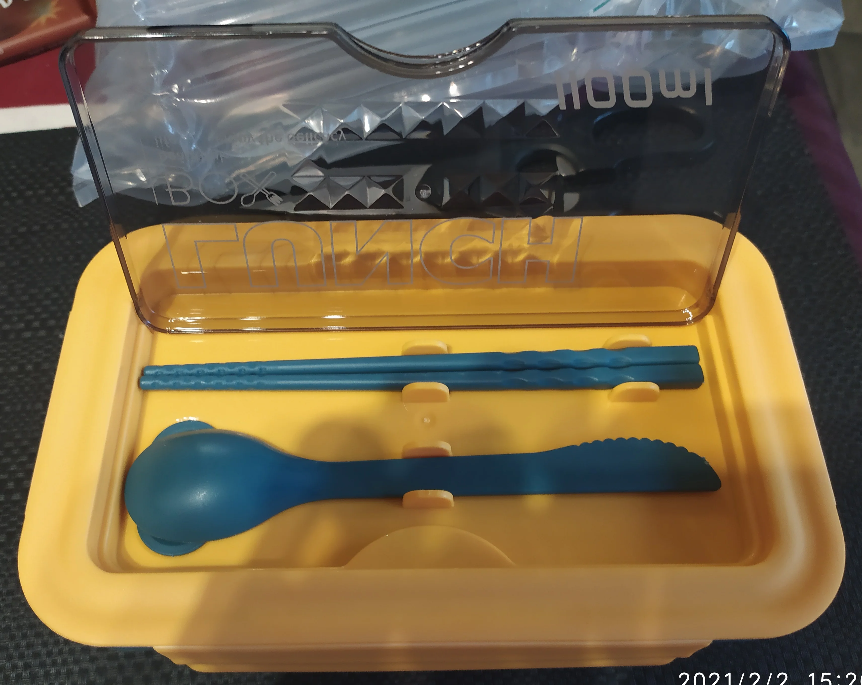 Заказ доставили достаточно быстро, хотя думал, что это займёт намного больше времени. Ланч бокс довольно таки большой. Думал будет немного поменьше, но это не принципиально, так даже лучше. Качество пластика не из лучших, но за эту цену просто отлично. На приборах немного осталось пластика, пришлось срезать ножом, это не сложно. В общем вещь своих денег стоит, рекомендую.