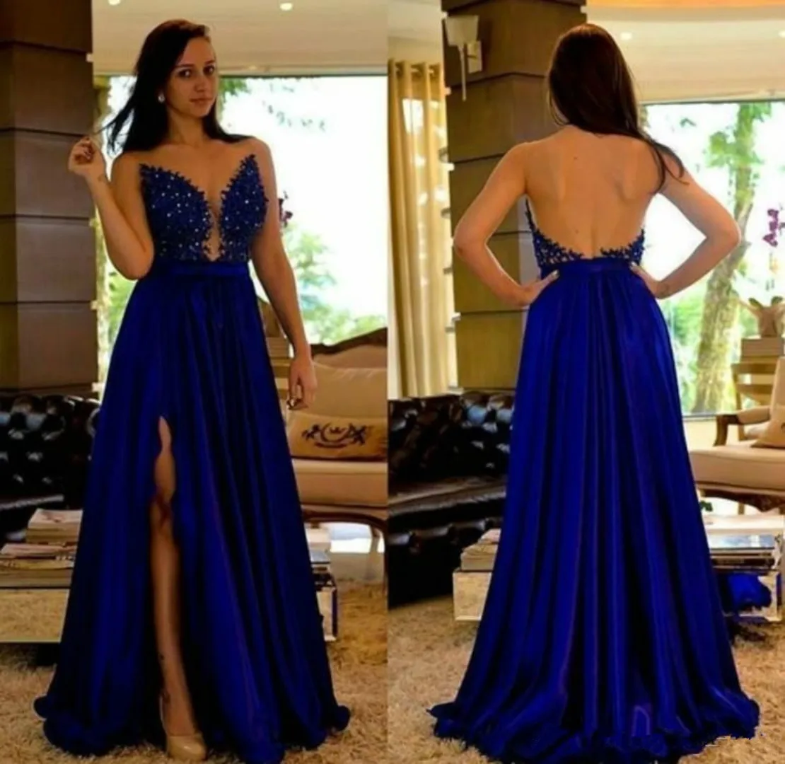 Королевское синее вечернее платье трапециевидной формы с кристаллами и аппликацией, сексуальное платье для выпускного вечера, новые винтажные вечерние платья