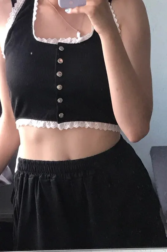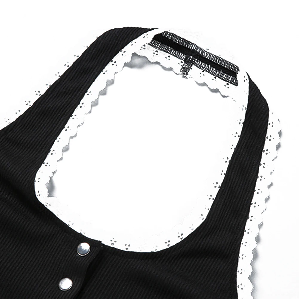 Милая E-girl укороченные топы на бретельках Y2k кружевной подол Лос...