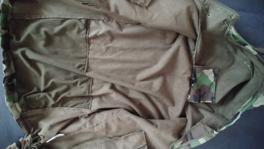 Материал интересный.козырек на капюшоне пришит далеко не симметрично,я его отпорол. Но главный недостаток изделия для меня это то что куртка неприталиная , рассчитанная видимо на полных мужчин.буду ушивать по 6см с каждой стороны
