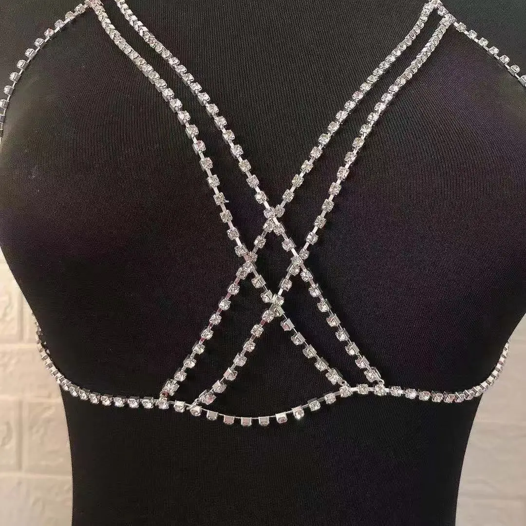 Европейская и американская мода стразы кристальная цепочка для груди женские пляжные аксессуары бикини Сексуальная цепочка для тела ювелирные изделия в подарок