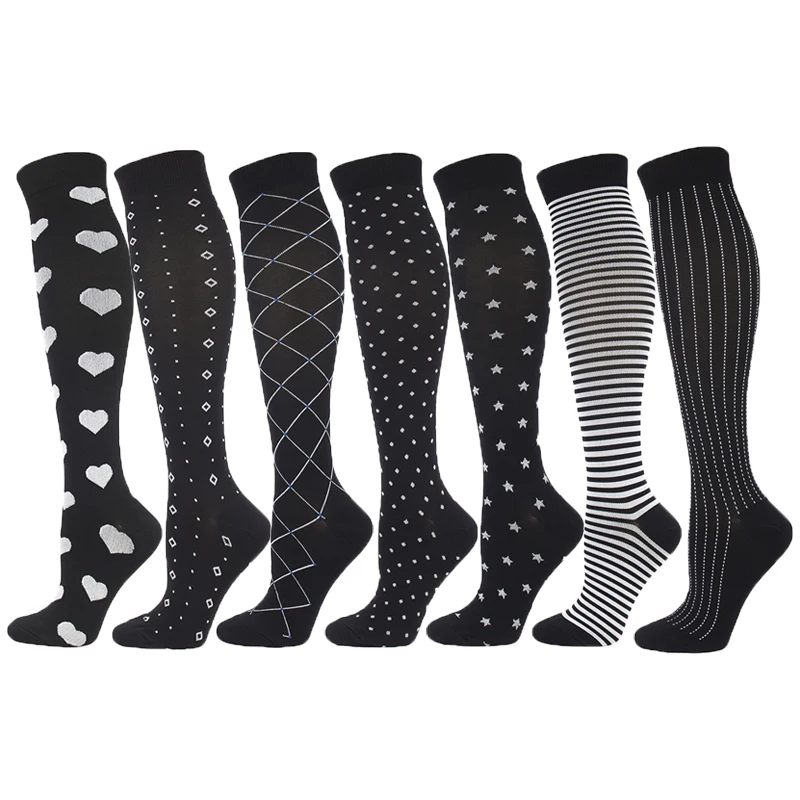 Компрессионные чулки Moda Mulaya для мужчин и женщин, носки в полоску с узором в виде звезд и влюбленных, для снятия давления, от варикозного расширения вен и кровообращения
