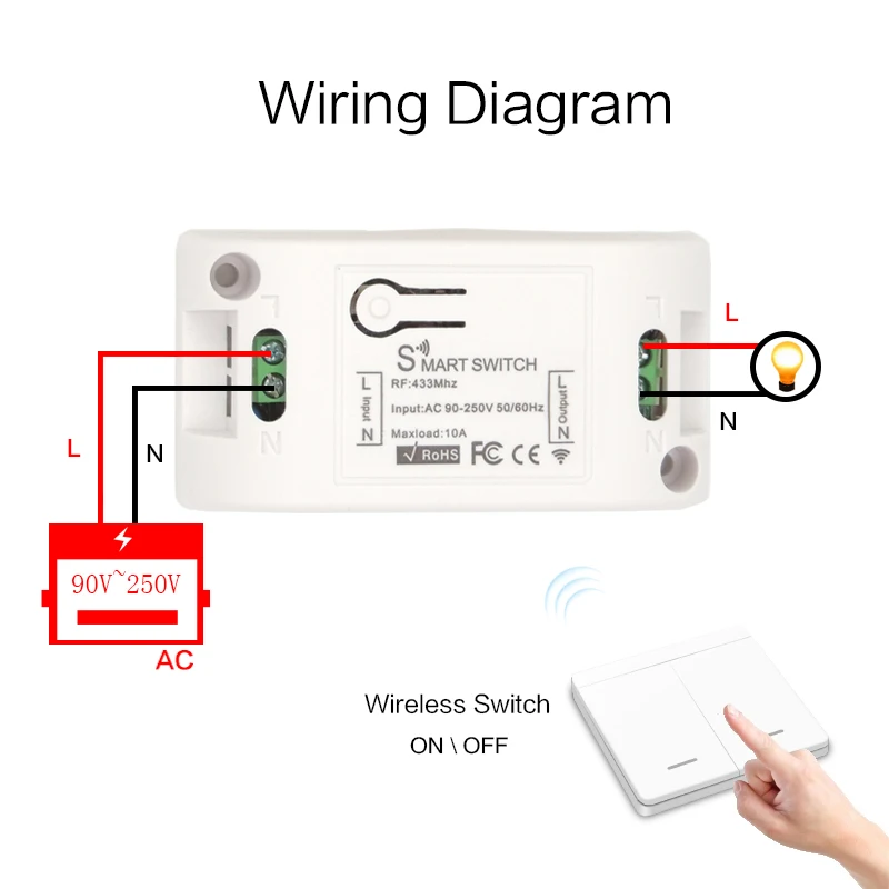 Радиочастотный переключатель ДУ для светильник щения, 433 МГц, 90-250 В переменного тока, 10 А, универсальный беспроводной ресивер, 23 клавиш