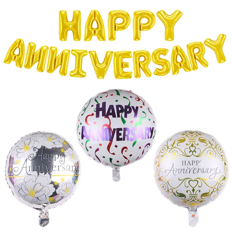 16 шт.лот, золотыесеребристые шары с надписью на годовщину, круглые шары на годовщину, вечерние украшения