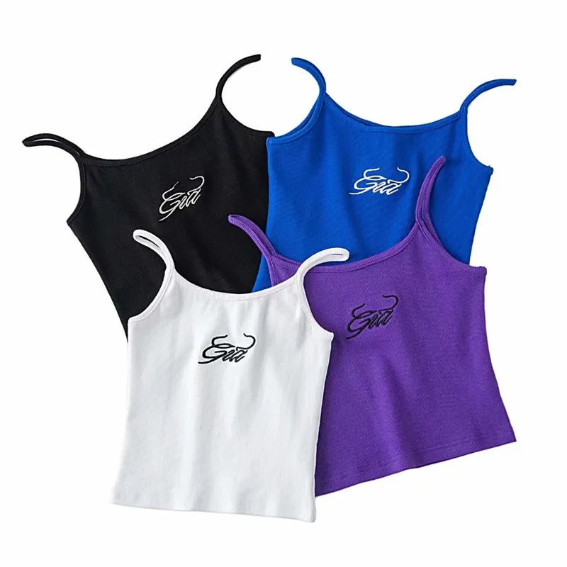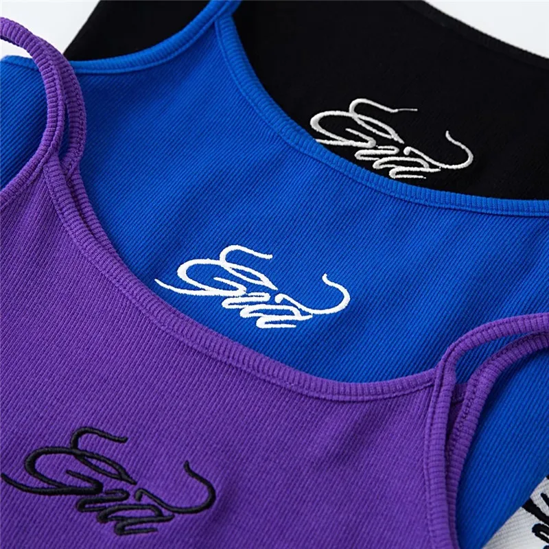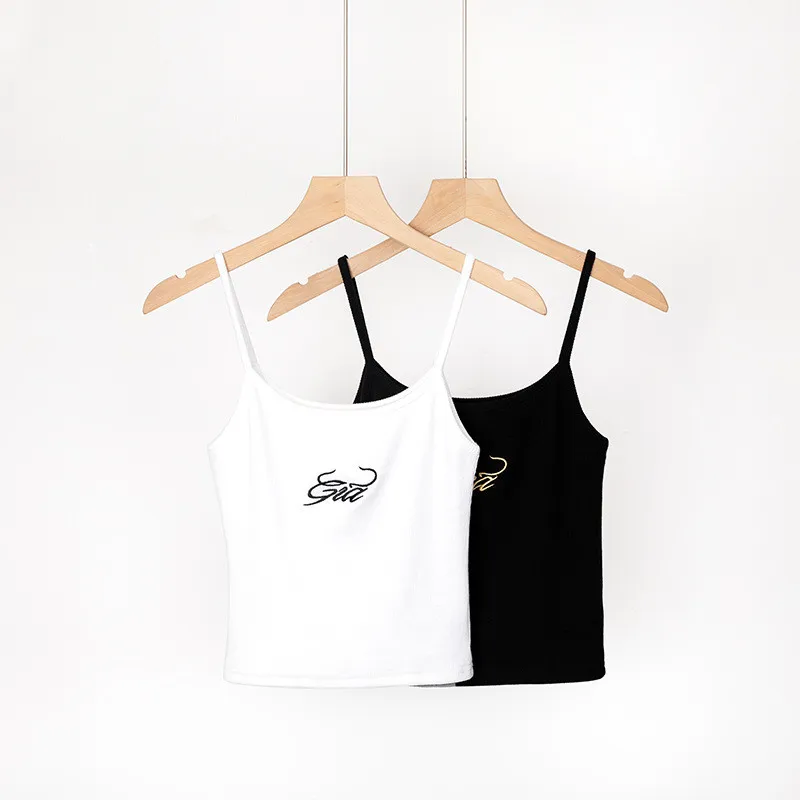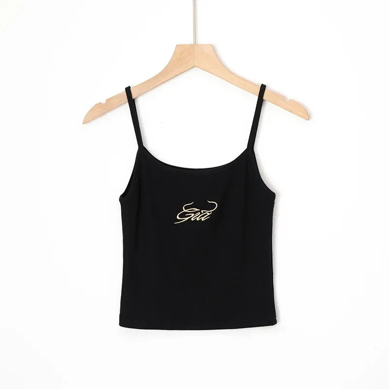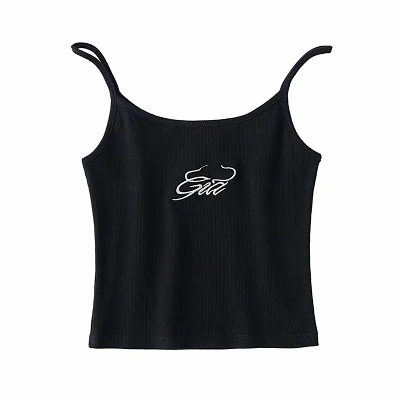 Топ женский уличный без рукавов, пикантный укороченный топ на бретелях с вышитой надписью Gia, Повседневная белая футболка в стиле Харадзюку, лето