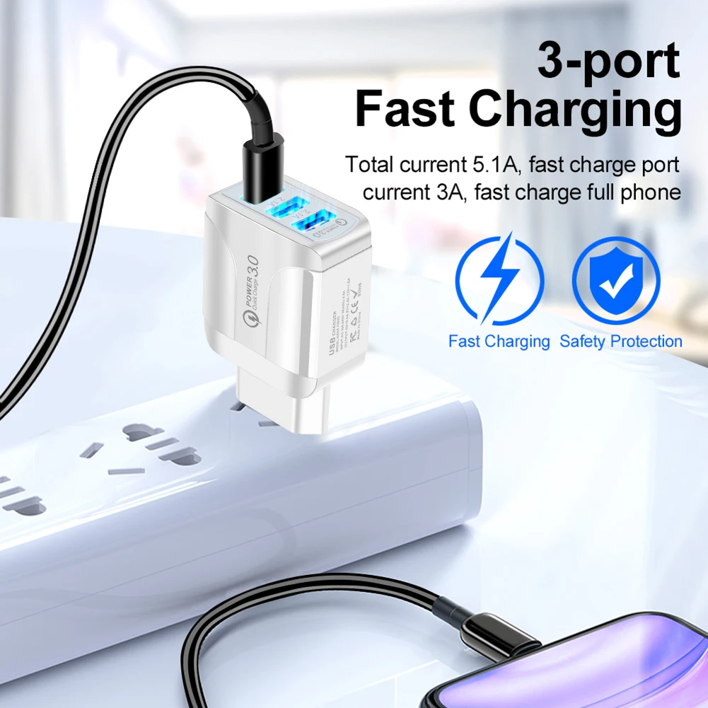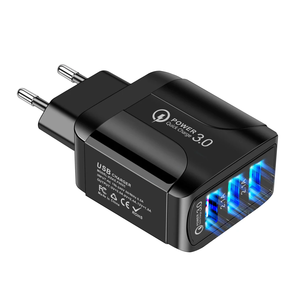 Быстрое зарядное устройство QC 3,0, 2,1 А, USB-разъем, три порта пи...