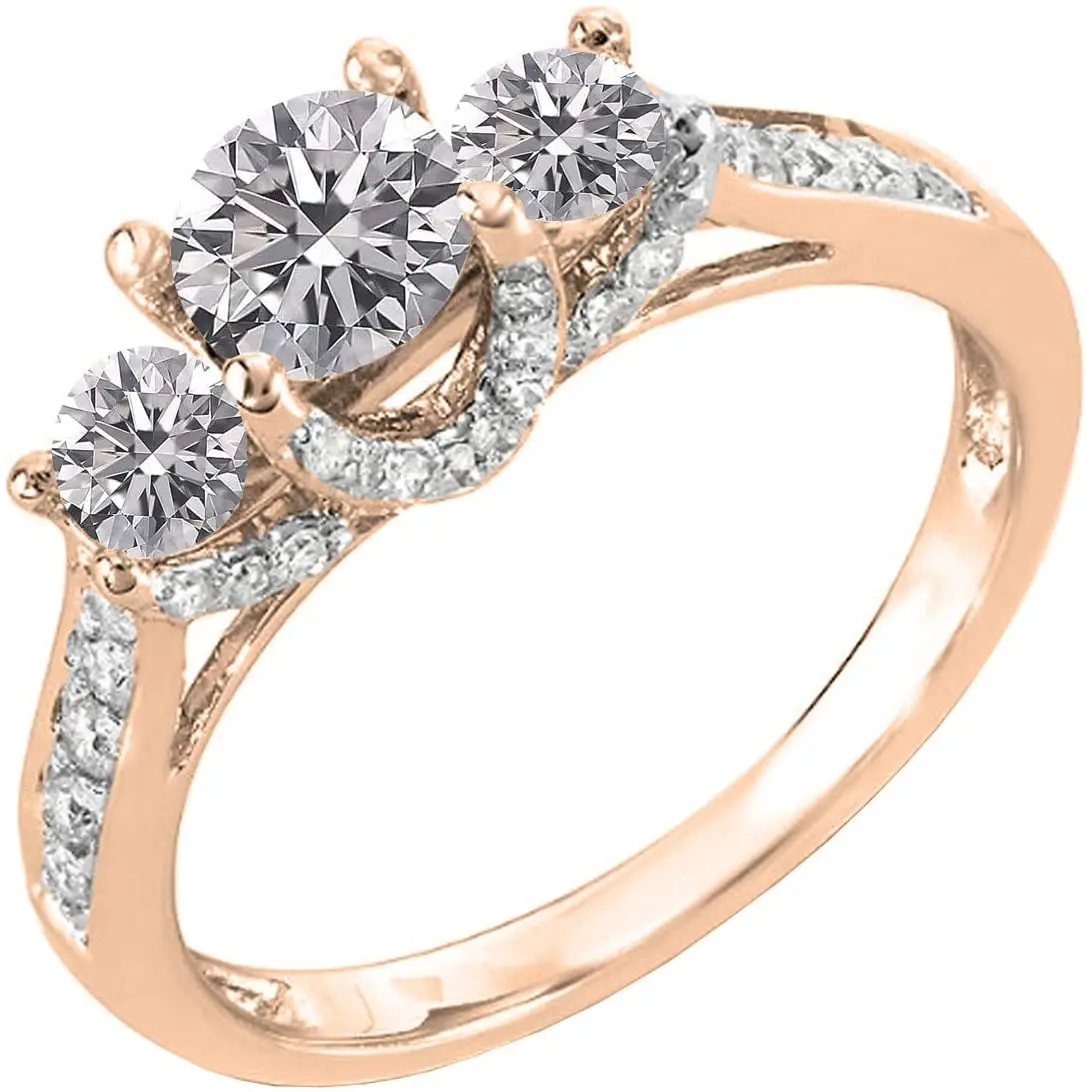 Для женщин 1 карат (Караты) 10K розовое золото S925 стерлингового серебра Обручение кольцо из белого золота Круглый Муассанит кольцо с бриллиантом D Цвет