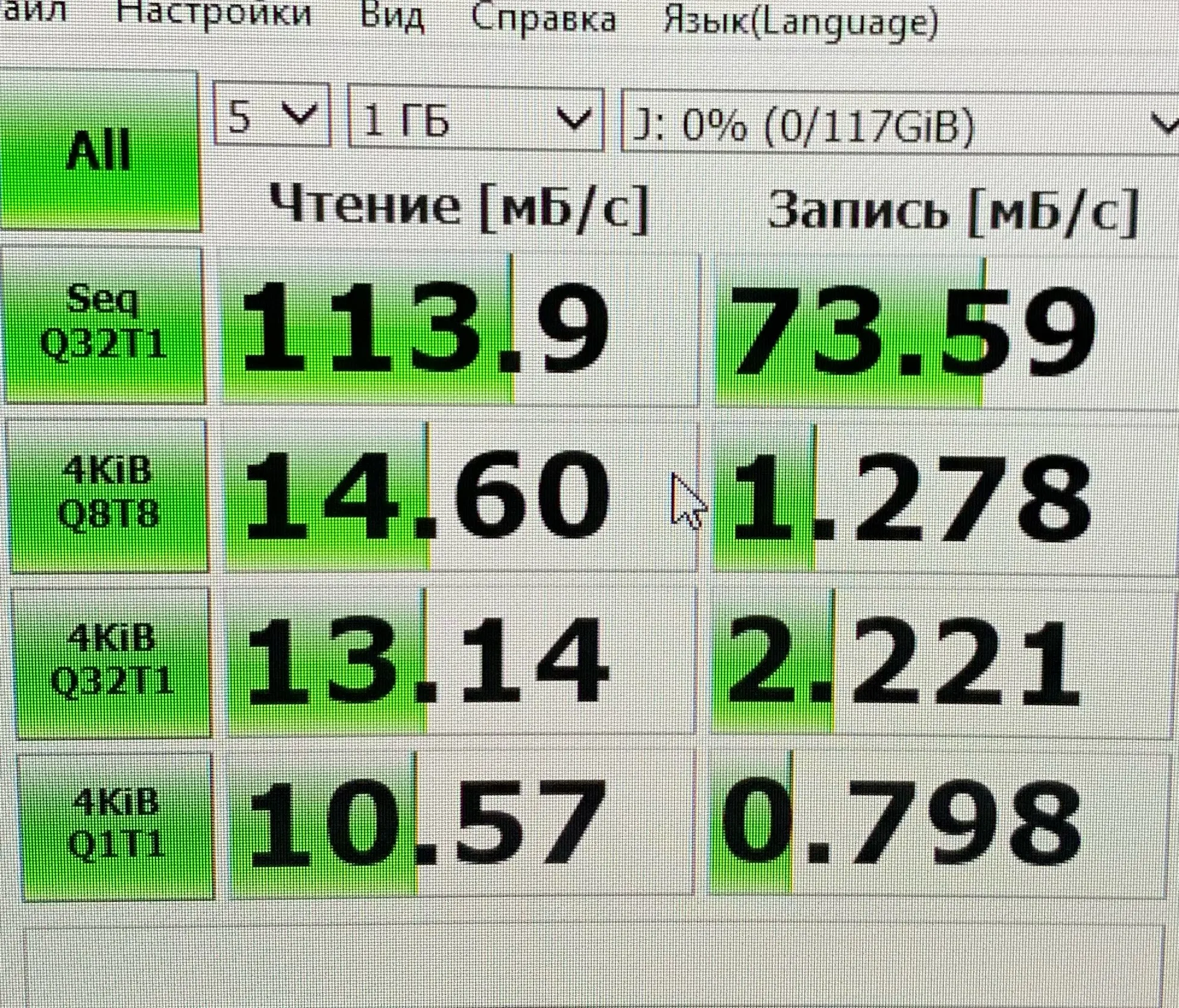 Ожидал большего. Фактически скорость записи 12-25 этот параметр меня разочаровал. Скорость чтения больше 100 это меня порадовало. Органомика на 5.