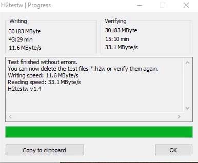 Протестированный USB порт 3,0 25 Мб в сообщении и 100 Мб в чтении. H2TESTW