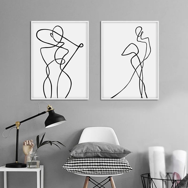 Настенный плакат на холсте с изображением линий, абстрактная женщина, простая Минималистичная живопись, декоративная картина, украшение для гостиной