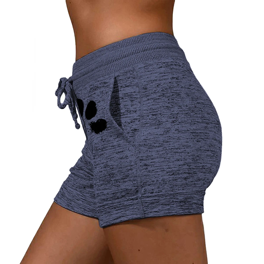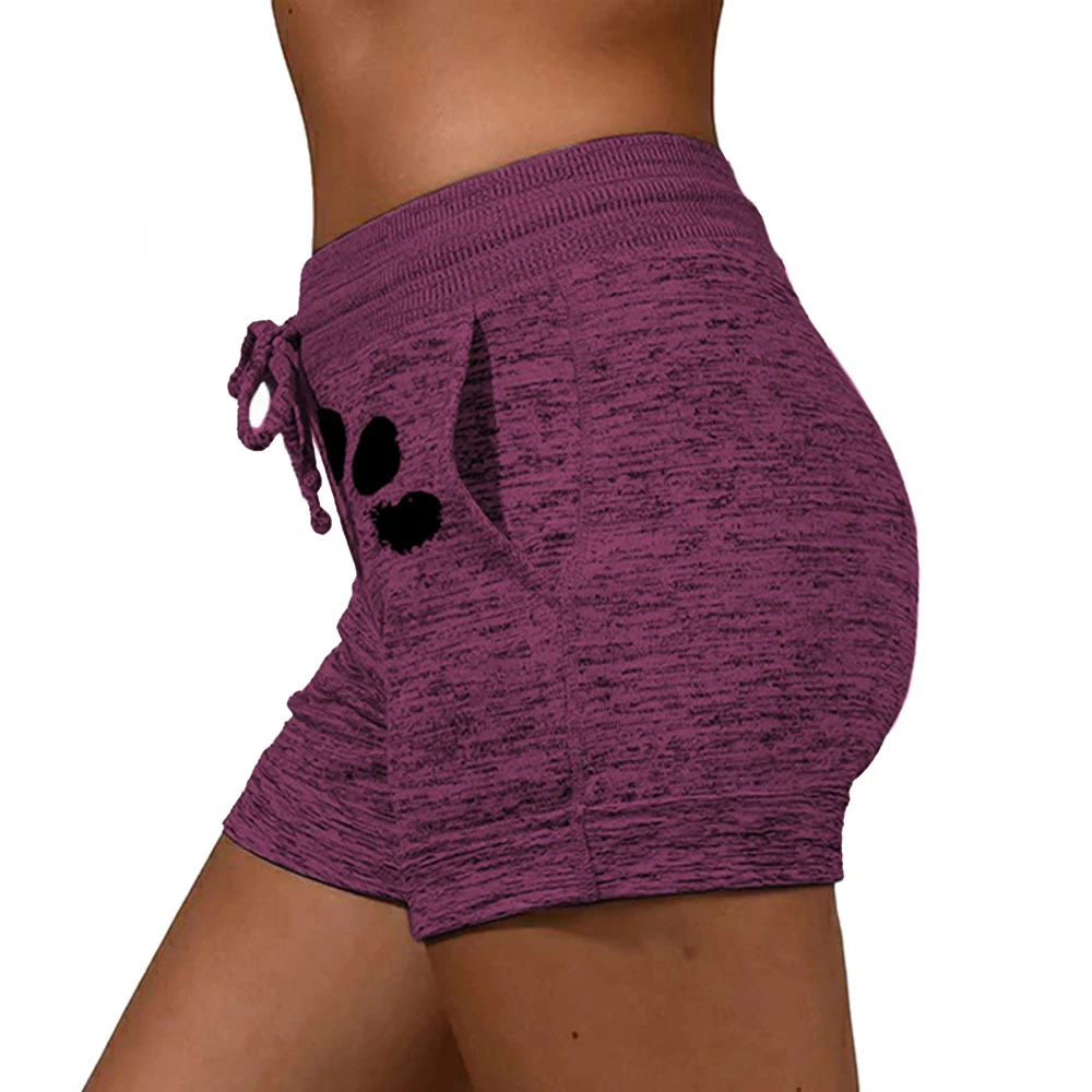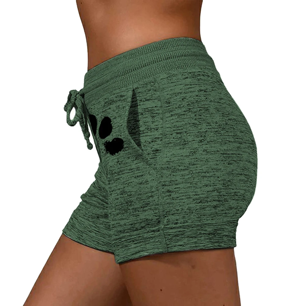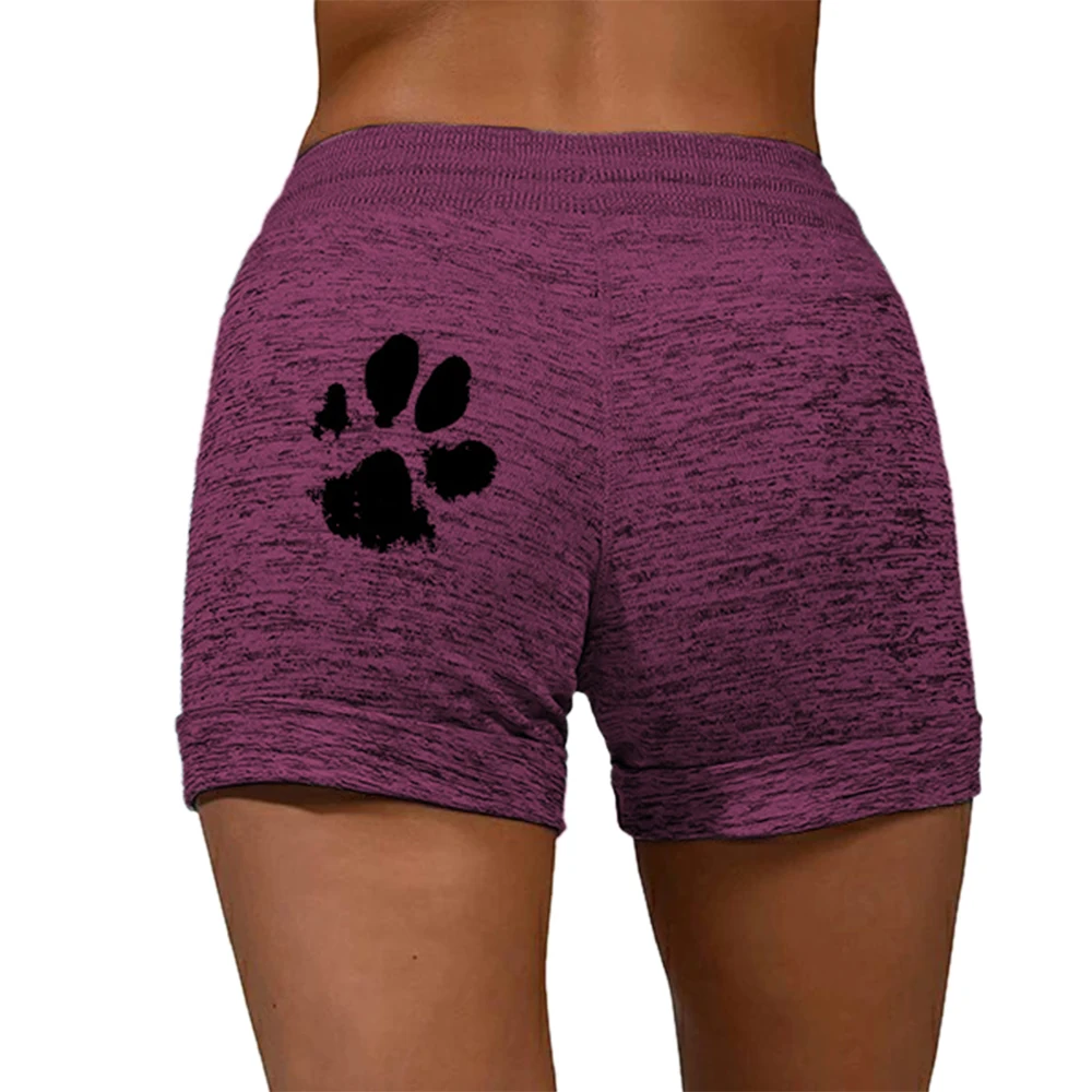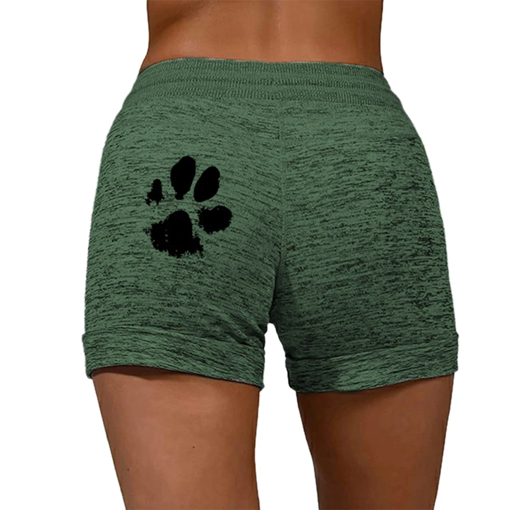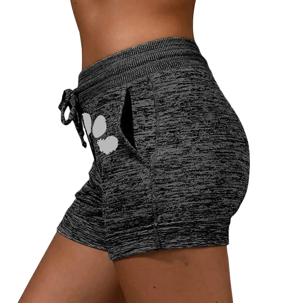 Шорты женские с завышенной талией, быстросохнущие эластичные мягкие пляжные повседневные спортивные с принтом кошачьих лап на шнуровке, лето
