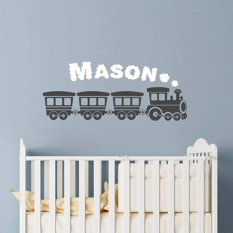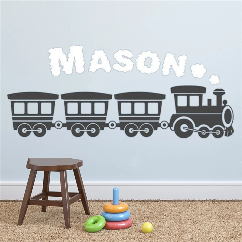 Детская Наклейка с именем для мальчика на заказ, настенная наклейка, Съемный Детский поезд, детский Декор для комнаты HY1368