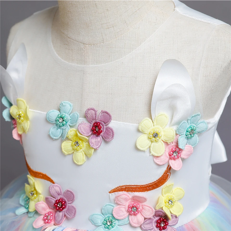 Детское платье с единорогом, карнавальный костюм на Хэллоуин, платье с многоярусными оборками для девочек, платья для выпускного вечера для подростков