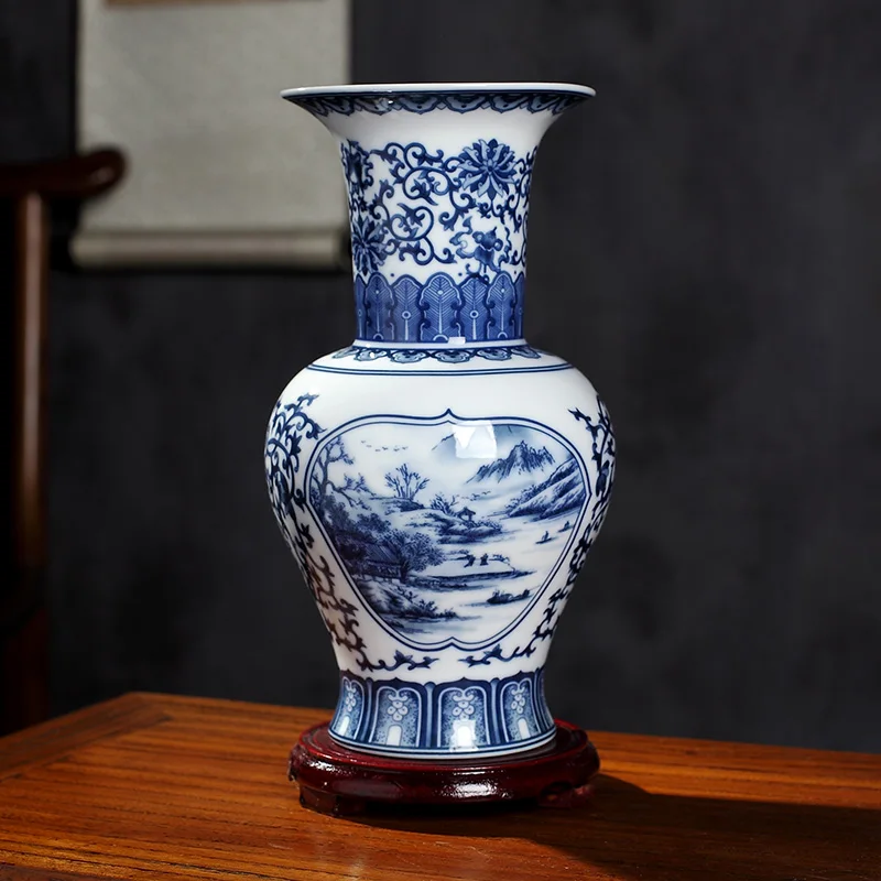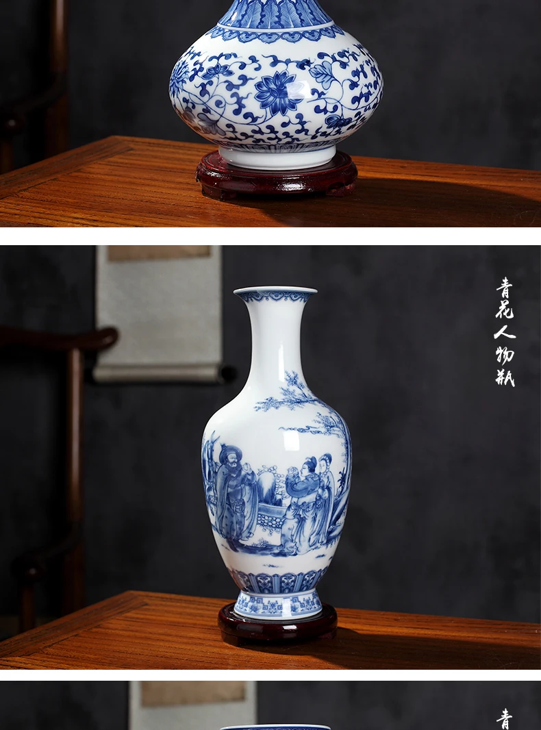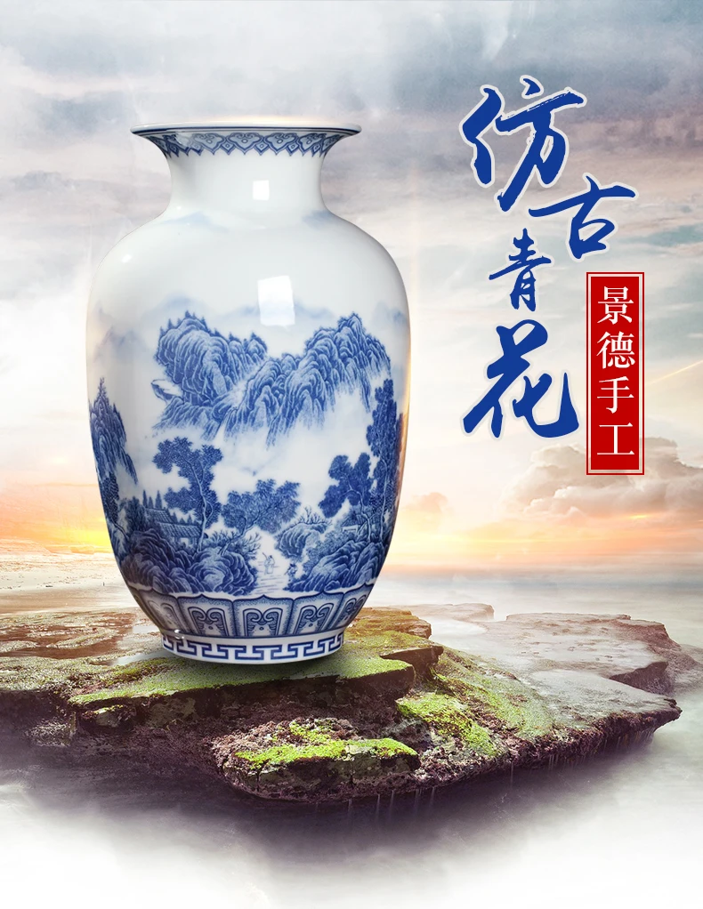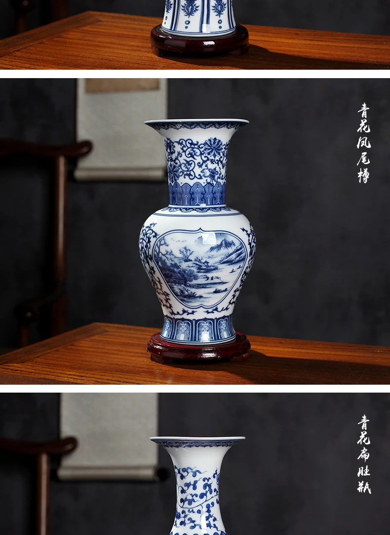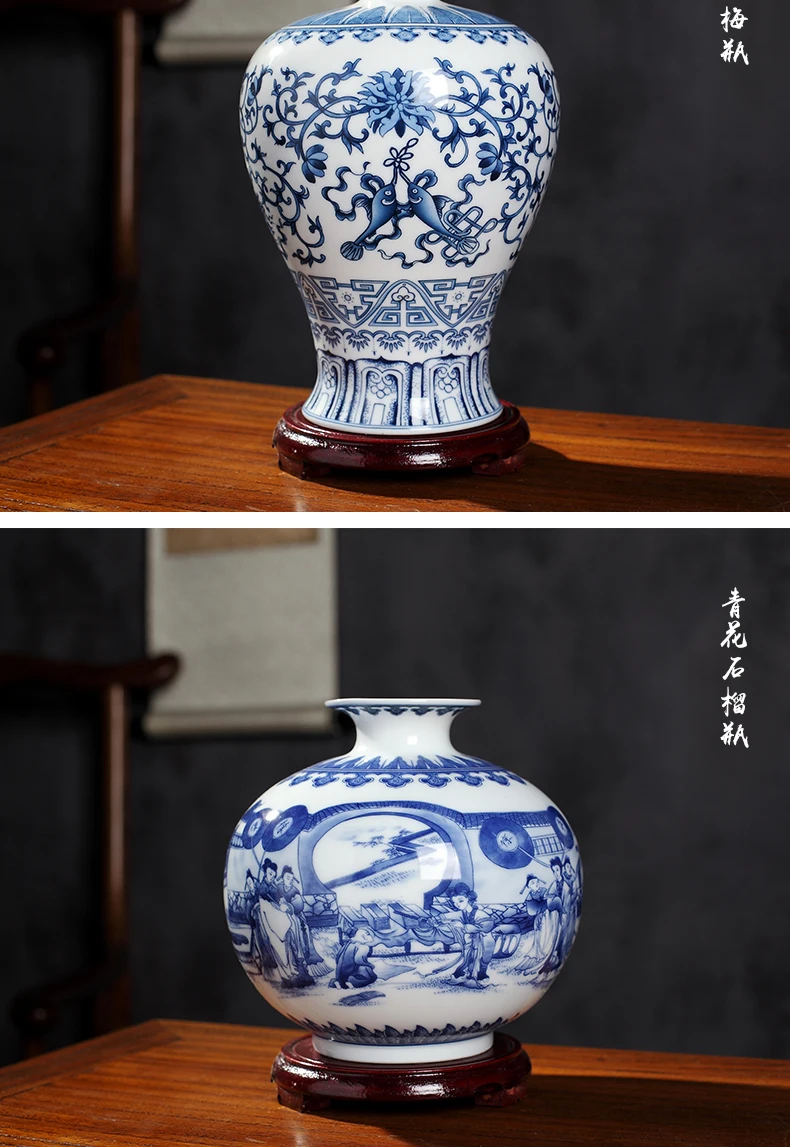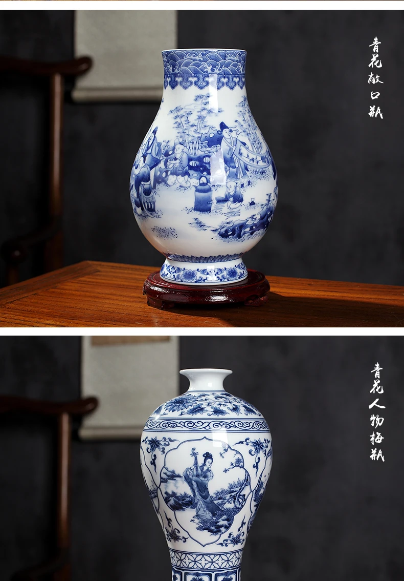 Керамика Jingdezhen, неглазурованная, сине-белая фарфоровая ваза в китайском стиле, украшение для гостиной, Цветочная композиция