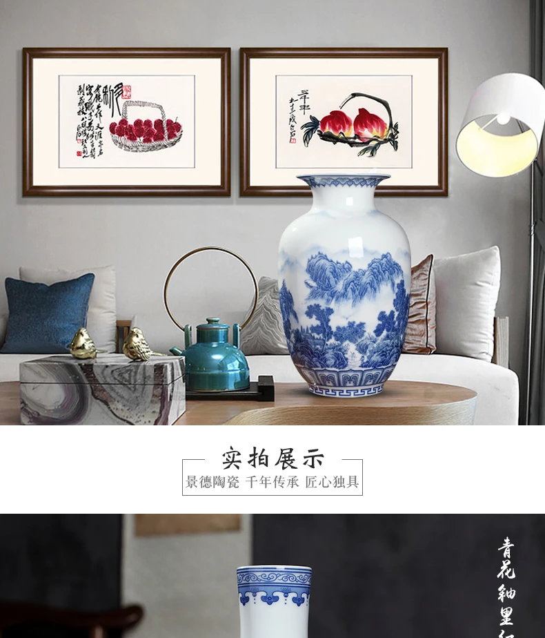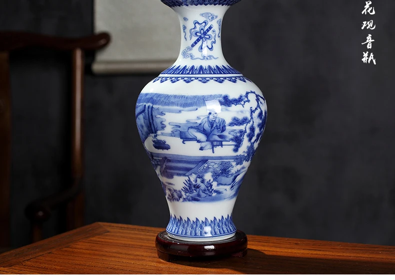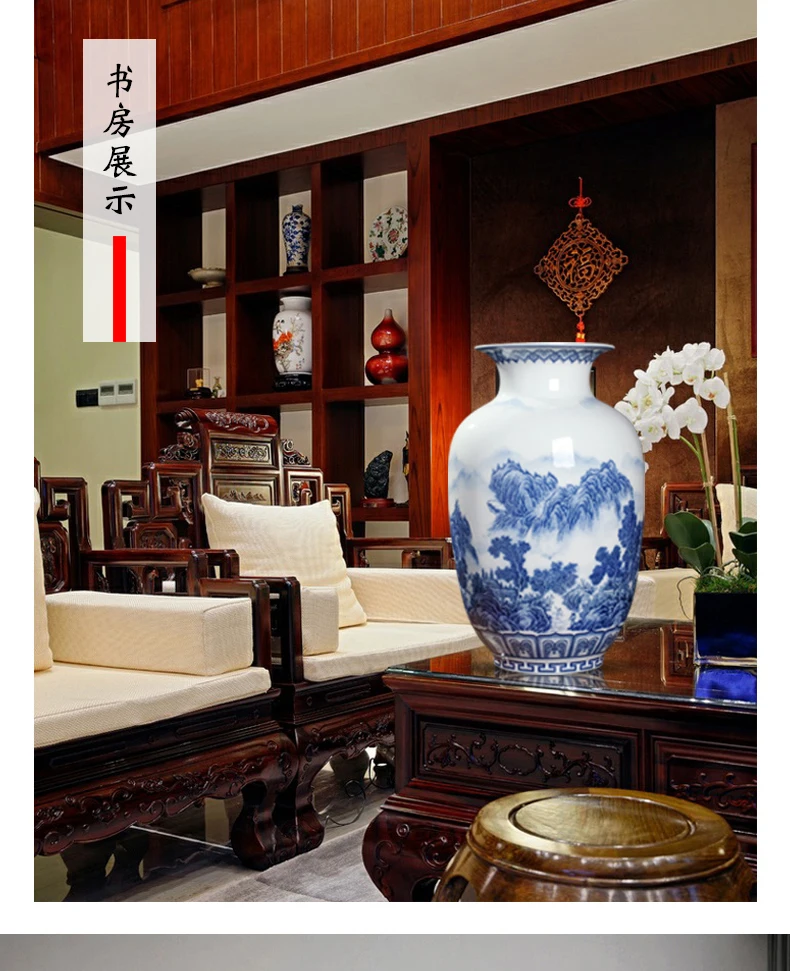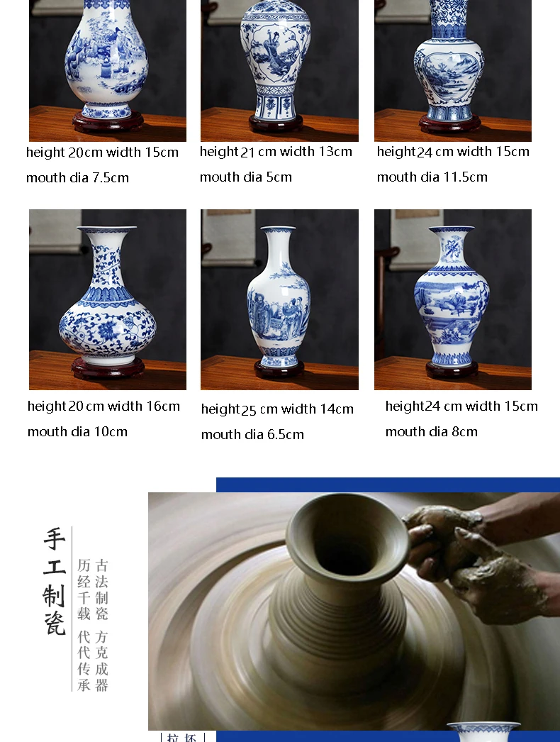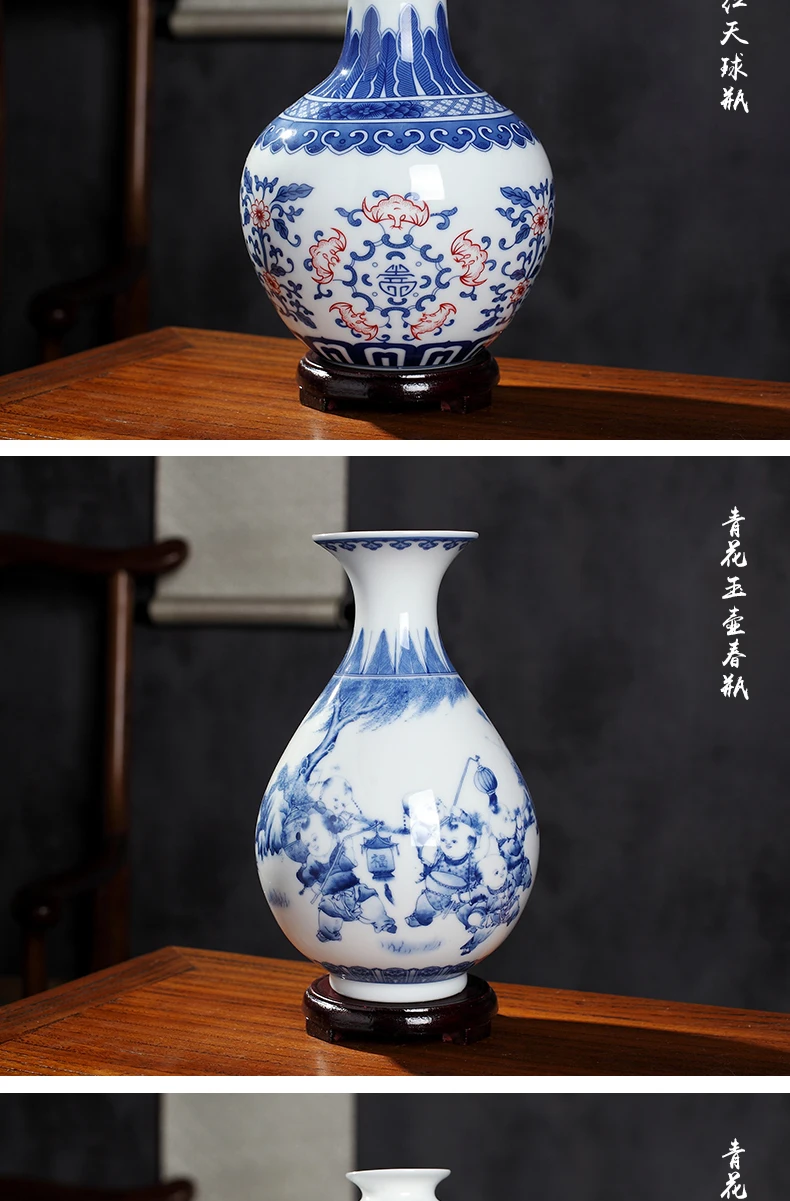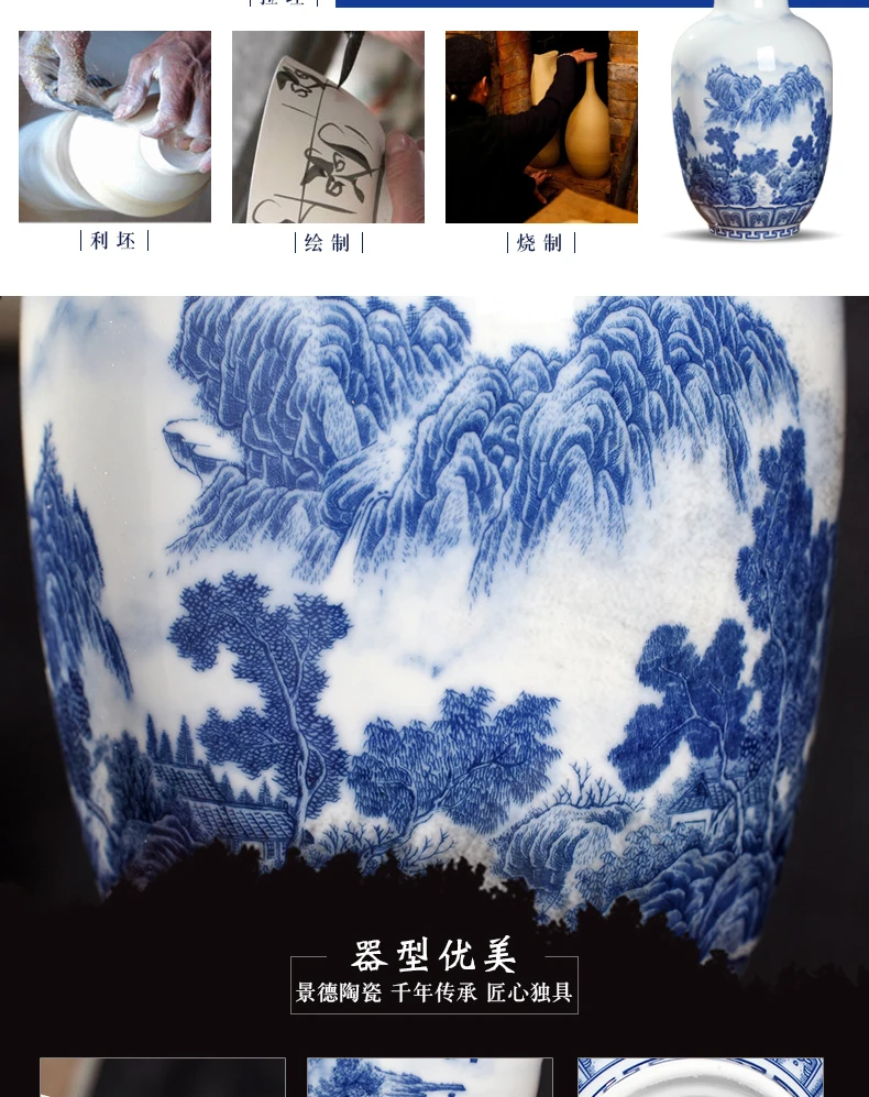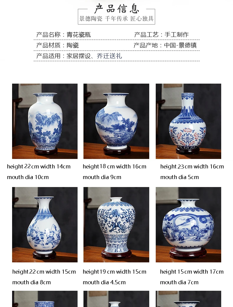 Керамика Jingdezhen, неглазурованная, сине-белая фарфоровая ваза в китайском стиле, украшение для гостиной, Цветочная композиция