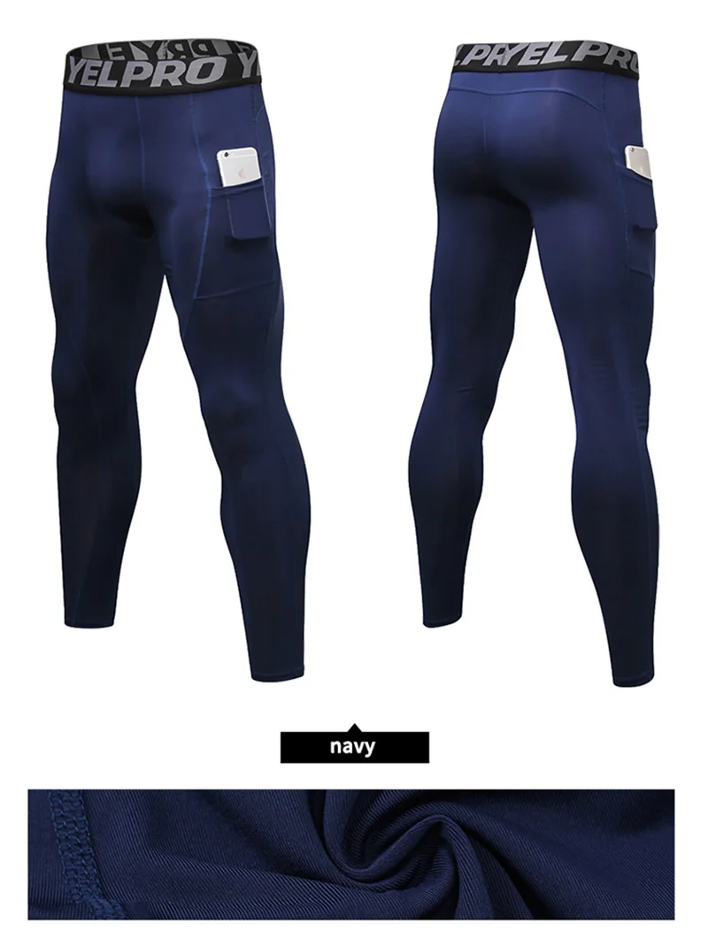 Леггинсы мужские компрессионные, черные, с карманом для телефона