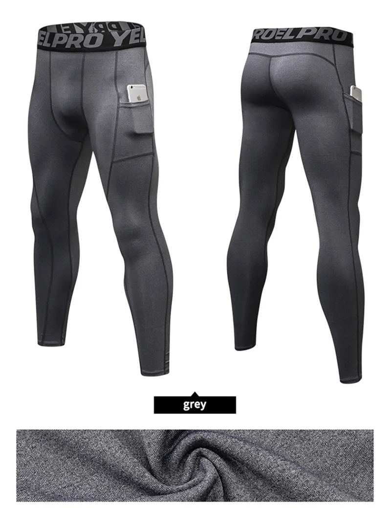 Мужские высокоэластичные Компрессионные Леггинсы с карманами для бе...