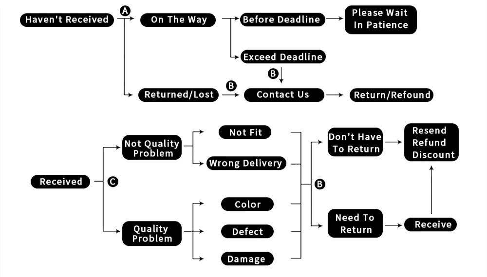 A, пожалуйста, проверьте информацию о доставке на AliexpressB, пожалуйста, свяжитесь с нами по Aliexpress сообщенияC, внимательно проверьте посылка и товарПожалуйста, не стесняйтесь связаться с нами, если у вас есть какие-либо другие вопросы.