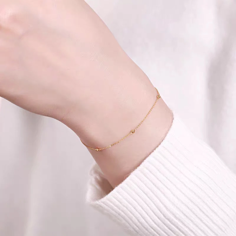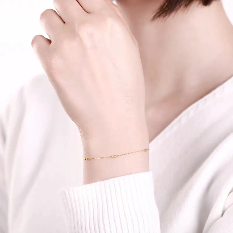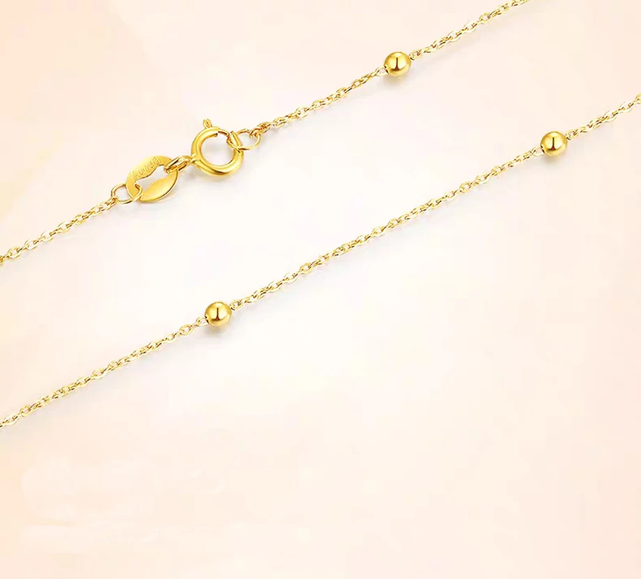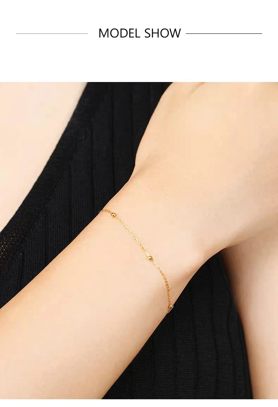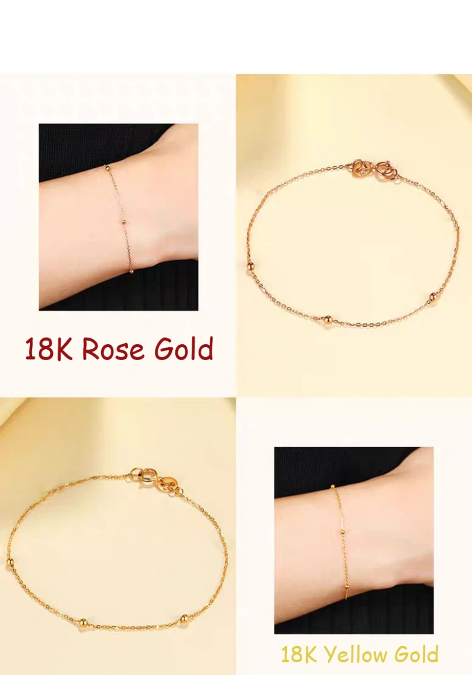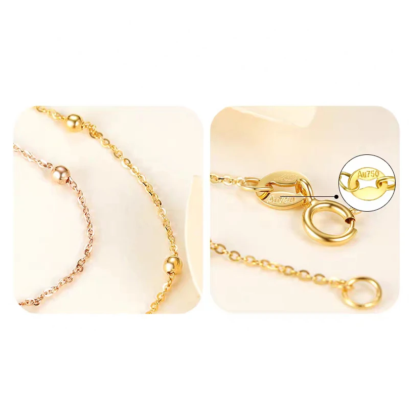 Цепочка гарантирована 100% золотом 18 К (AU750). Он немного тонкий. Но очень блестящий. Материал шара: золото 18 К, заполненное силикагелем посередине, может лучше закрепить баллон сейчас цена золота растет и превысила 70 долларов США за грамм. Этот золотой браслет очень экономичен.