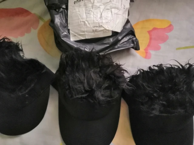 the fake hair looks a bit cooler on the pic, not sure if the flokati is the same. still a cool gimmick worth the price. i just wish sellers would refrain from those 'pimped' product pics. reality and honesty are valuable and to be valued, this already starts in small things. aside from this: fast shipping, ca. 2 weeks CN to EU.
