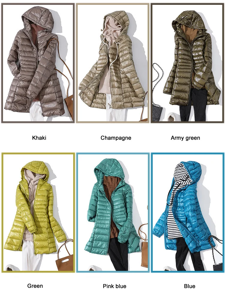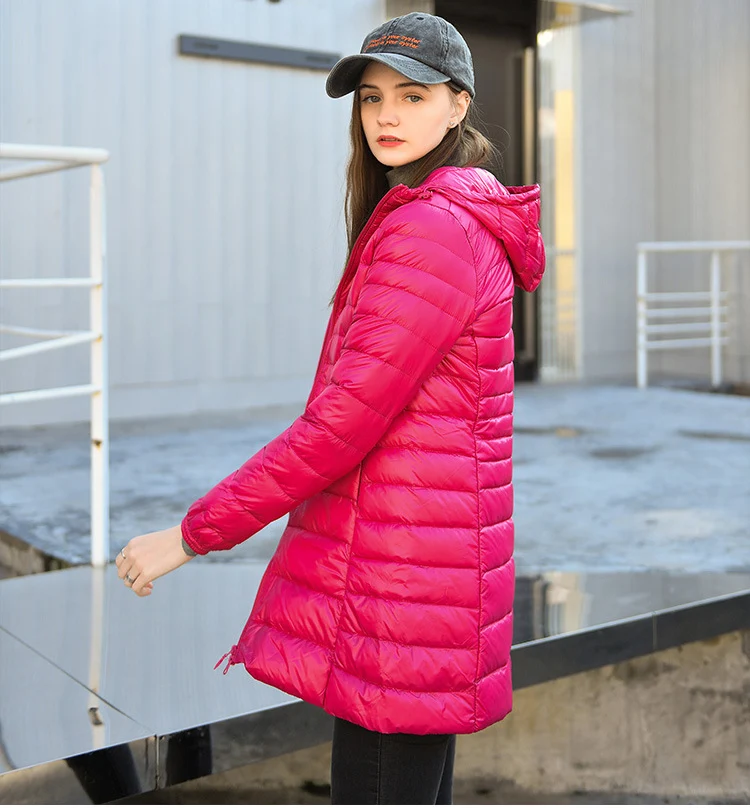 Пуховик женский зимний на утином пуху, Сверхлегкий пуховик с капюшоном, портативная длинная парка, стеганое пальто 6XL 7XL, размера плюс