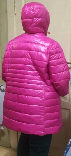 Куртку получила через 3 недели.Легкая,невесомая.Все хорошо,но с размером немного перестраховалась.Надо было брать меньше на ог 123,об 128.Подошел бы 6 xl.
