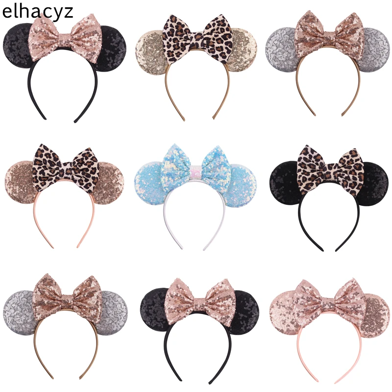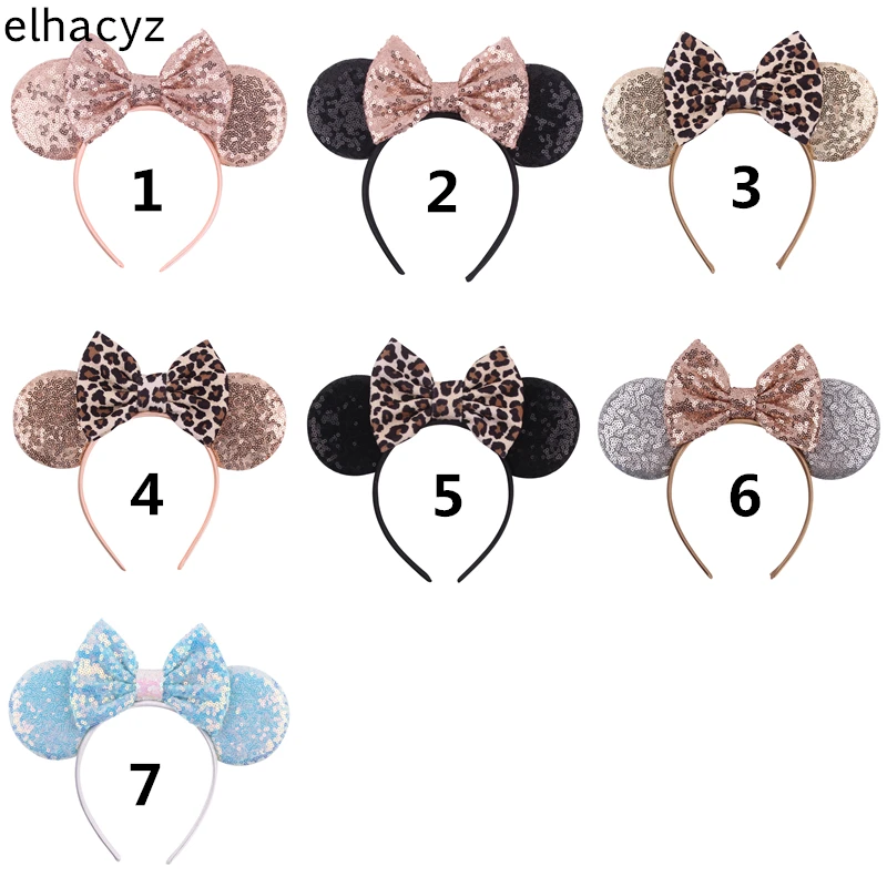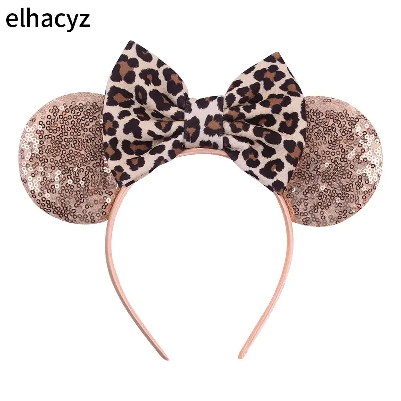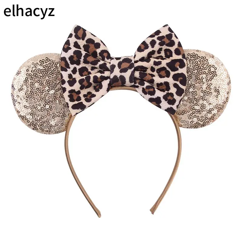 10 шт.лот новый шикарный ободок с блестками и ушками мыши Леопардовый бант повязка на голову для девушек женщин украшение для волос вечерние головные уборы аксессуары для волос