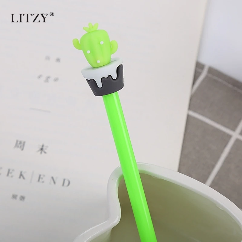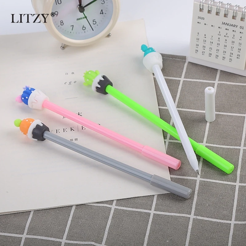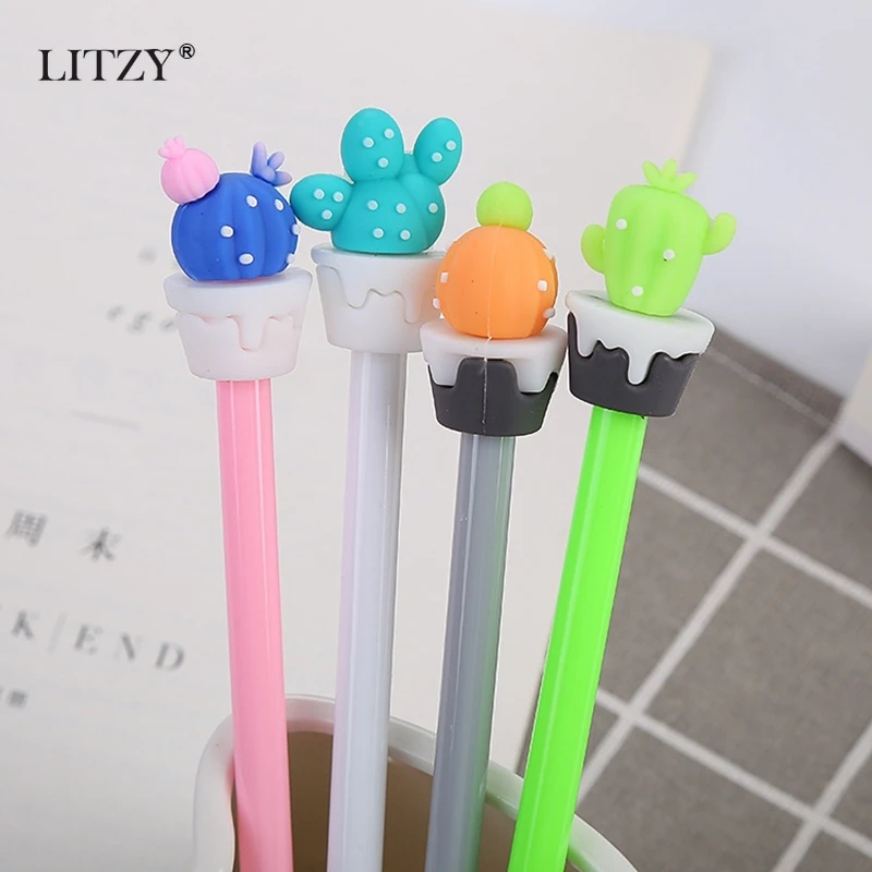 Ручки нейтральные с черными чернилами, гелевая ручка с кактусами мм, 4 шт.компл., 0,5, ручки, кавайные канцелярские принадлежности шт.