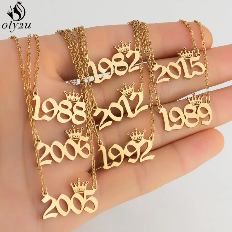 Ожерелье из нержавеющей стали с цифрами на год для женщин, уникальное ожерелье с уникальной короной со специальной датой 1980, 1999, 2003, 2019, чокер, подарки подружкам невесты