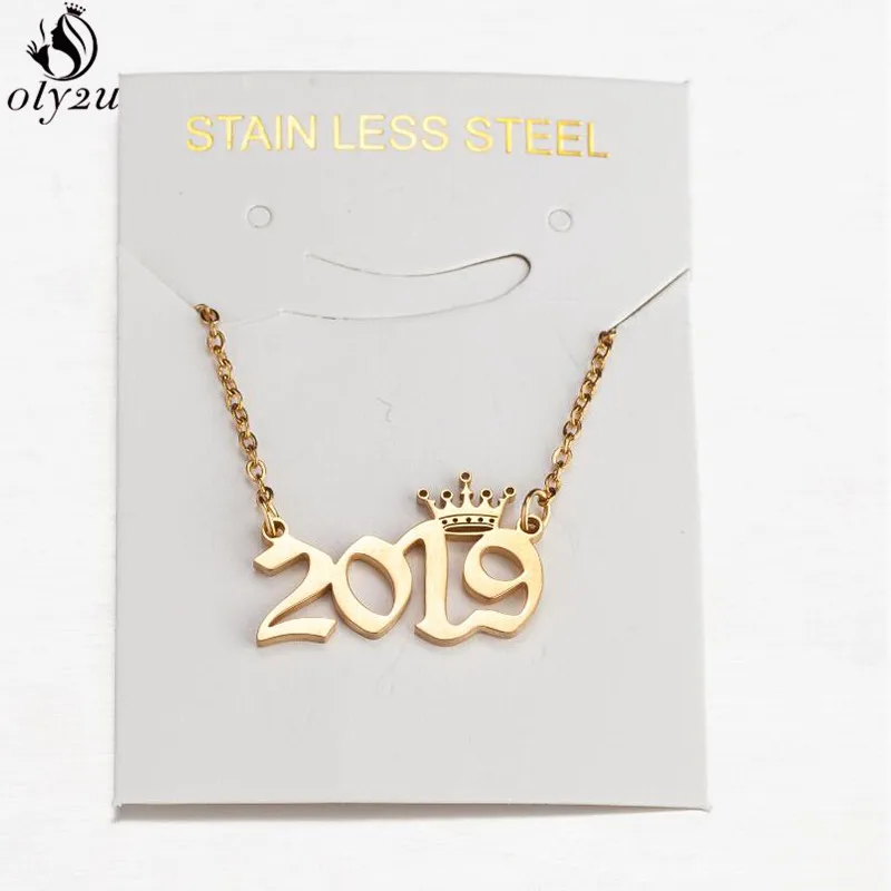 Oly2u 1980-2020 год Номер ожерелья в золотом цвете из нержавеющей с...