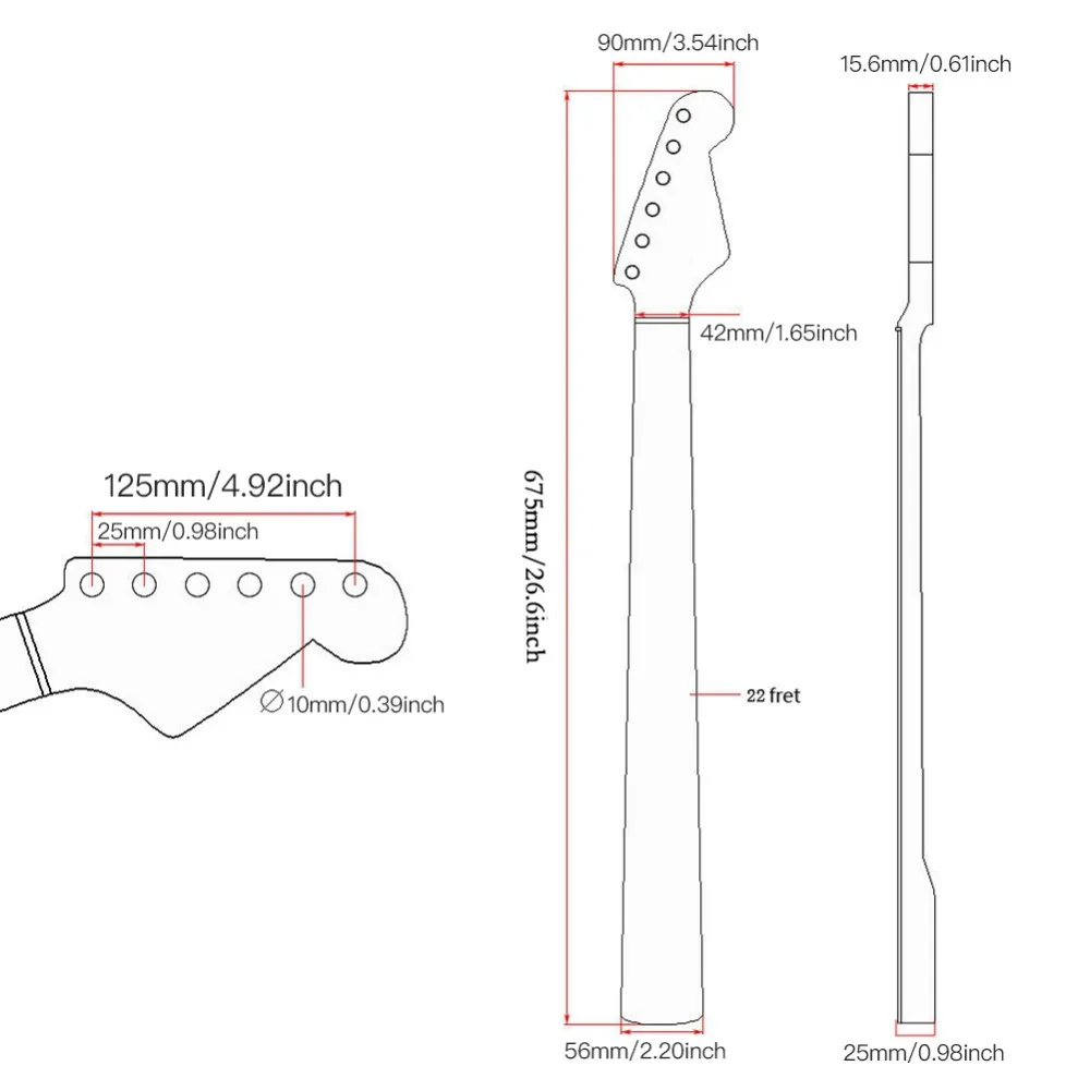 Особенности:Для ST электрогитары, отличная замена для вашей ST гитары.100% новая электрогитара Шея, шея и гриф сделаны из высококачественного импортного CA кленового дерева.Регулируемый гитарный ферменный стержень установлен, вы можете настроить его, если nessary.22 лада шеи гитары, peg отверстия диаметром 10 мм для установки тюнера.С инкрустацией точек сбоку, удобно различать соответствующий лад.